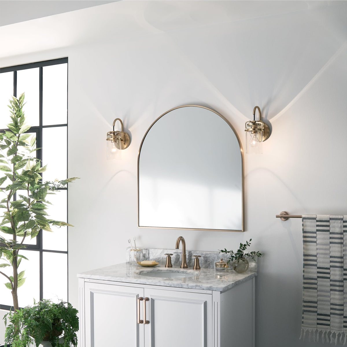 Brinley 5'' 1 light wall sconce features a vintage look with its Champagne Bronze finish and clear glass. Inspired by mason jars, the Brinley Wall Sconce works in several aesthetic environments, including vintage and transitional. The Brinley Collection is safety rated cETLus dry for indoor, dry spaces. To clean, simply wipe with a damp cloth