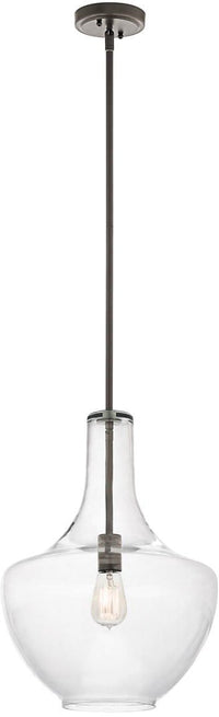 Amazon.Comincludes One Vintage Squirrel Cage Filament Bulb (View Larger).The Design Of This Single-Light Pendant From Kichler'S Everly Collection Is Inspired By A Decorative Blown Glass Container (Model 42046Oz). This Generous, Bowed Clear Glass Fixture Features An Olde Bronze Finish And A Distinctive Vintage Squirrel Cage Filament Bulb That Leaves An Impact. For Ease Of Use, The Glass Shell Is Removable For Cleaning And Replacement. Pair It With Other Members Of The Everly Lighting Family, Which Includes Several Shapes Of Blown Glass Containers In Your Choice Of Chrome Or Olde Bronze Finishes.The 42046Oz Fixture Measures 13-3/4 Inches Wide, And Has A Body Height Of 20-1/4 Inches, And A 59-Inch Maximum Hanging. This Pendant Comes With A 61-Inch Lead Wire Length, A 36-Inch Chain, And A 5-Inch Diameter Backplate. It Uses One 100-Watt Vintage Squirrel Cage Filament Bulb (Not Included).Kichler Provides A Variety Of Pendant Lighting Options To Match Most Of Its Popular Families, So Coordinating The Lighting In Your Home Has Never Been Easier. A Pendant In The Foyer Can Be A Breathtaking Introduction To Your Home. Pendants Or Inverted Pendants Are Also An Excellent Choice For Over The Table In A Breakfast Nook, Dinette Or Kitchen Island. They Can Provide General Illumination Or Create Focused Task Lighting, Depending On Your Need. About Kichleroffering A Distinctive Array Of Solutions That Reflect Your Individual Personality, Tastes, And Plans, Kichler Brings You An Unparalleled Variety Of Exciting Style Families, Unique Finishes, Fresh Colors And Unequaled Quality. Simply Select A Style And Then Choose Among The Many Fixtures -- From Chandeliers And Chandelettes To Wall Sconces And Ceiling Mounts Along With Matching Ceiling Fans - All Provided Within The Very Same Distinctive Family Collection. Family Owned And Operated Since 1938, Kichler Is A Five-Time Winner Of The Prestigious Arts Award And Is A Leader In Energy-Efficient Technology. 42046Oz Everly 1-Light Pendant At A Glance Olde Bronze Finish With Clear Glass Coordinates With The Entire Everly Collection Removable Glass For Cleaning Uses One 100-Watt Vintage Squirrel Cage Filament Bulb (Not Included) Ul Rated For Dry Locations Backed By A 1-Year Limited Warrantyproduct Descriptionthe Everly 19.75 One Light Bell Shaped Pendant Comes With A Curved, Glass Blown Container Featuring Clear Glass And An Olde Bronze Finish For A Simple And Elegant Look. The Everly'S Versatile Design Coordinates With A Variety Of Styles And Can Be Used Singularly, In Multiples Or Arranged At Varying Heights To Elevate The Room.