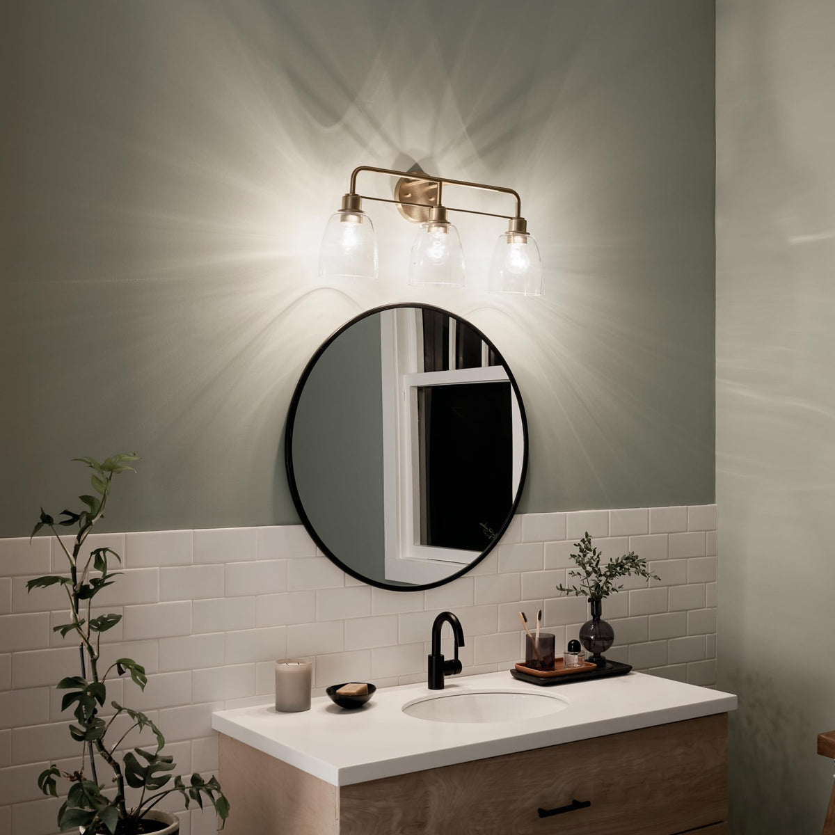 Kichler Meller 24.25 Inch 3 Light Vanity Light With Clear Glass Shades In Champagne Bronze For Bathroom Or Powder Room, (24.25''