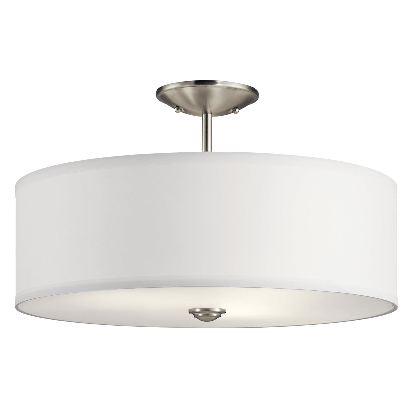 Kichler Shailene 18'' Semi Flush Mount Light In Brushed Nickel, 3-Light Round Ceiling Light With Satin Etched White Diffuser, (1