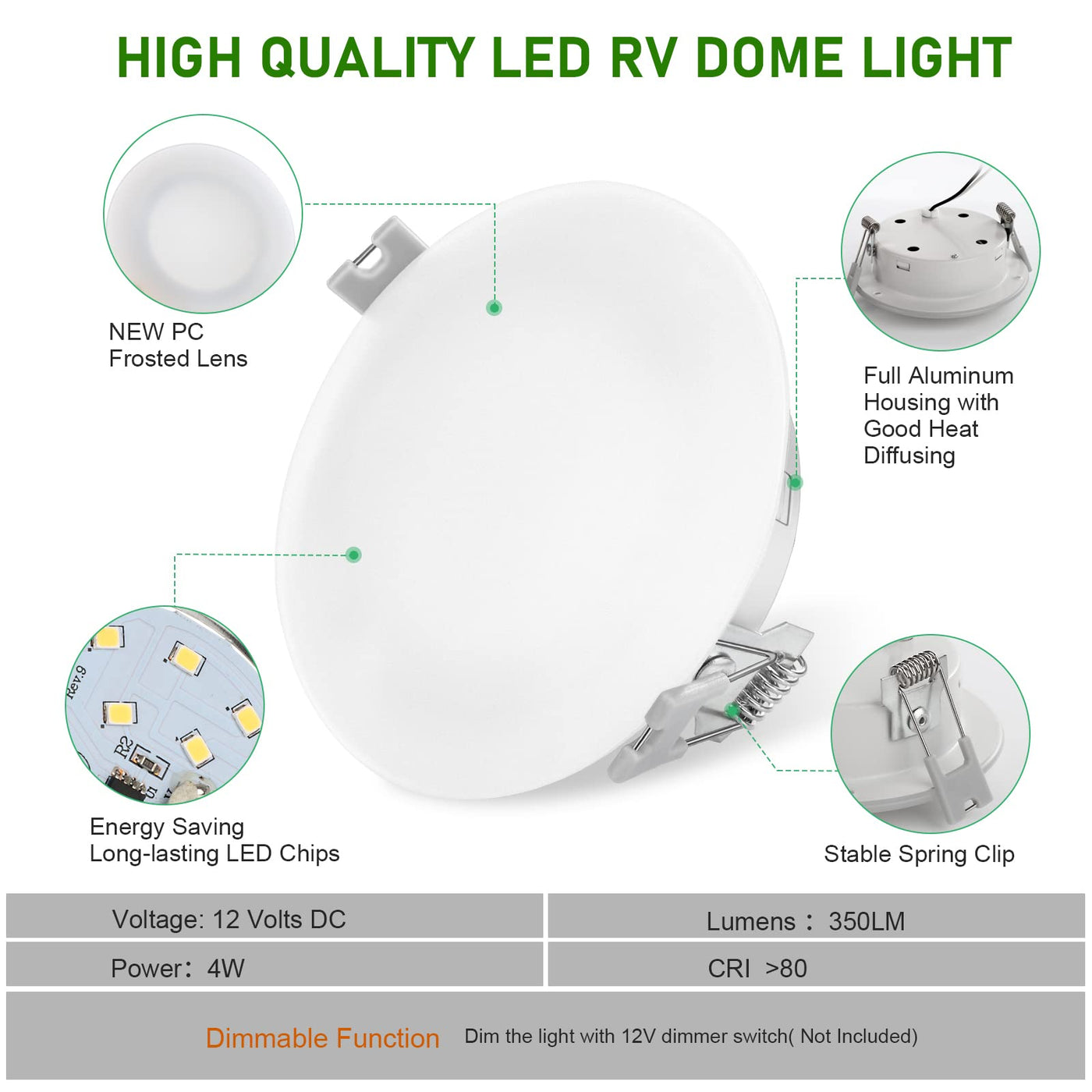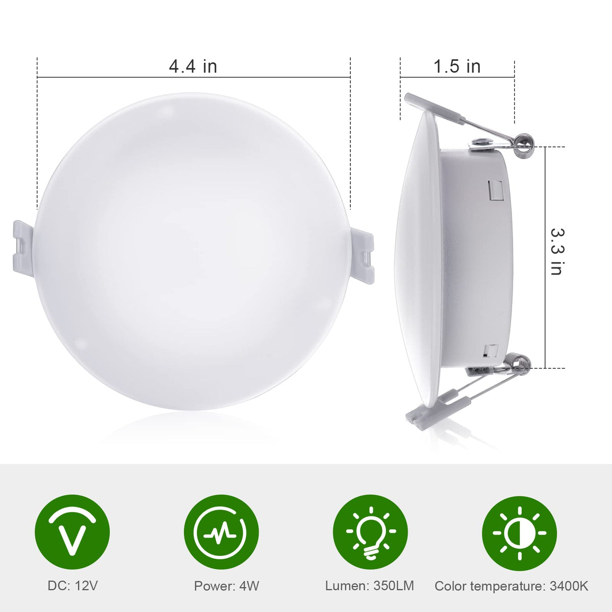 Kicored Led Rv Recessed Ceiling Light 4.5Inch Dc12V Cabinet Light Interior Lighting For Rv Motorhome Camper Caravan Trailer Boat, Warm White Kicored (1)