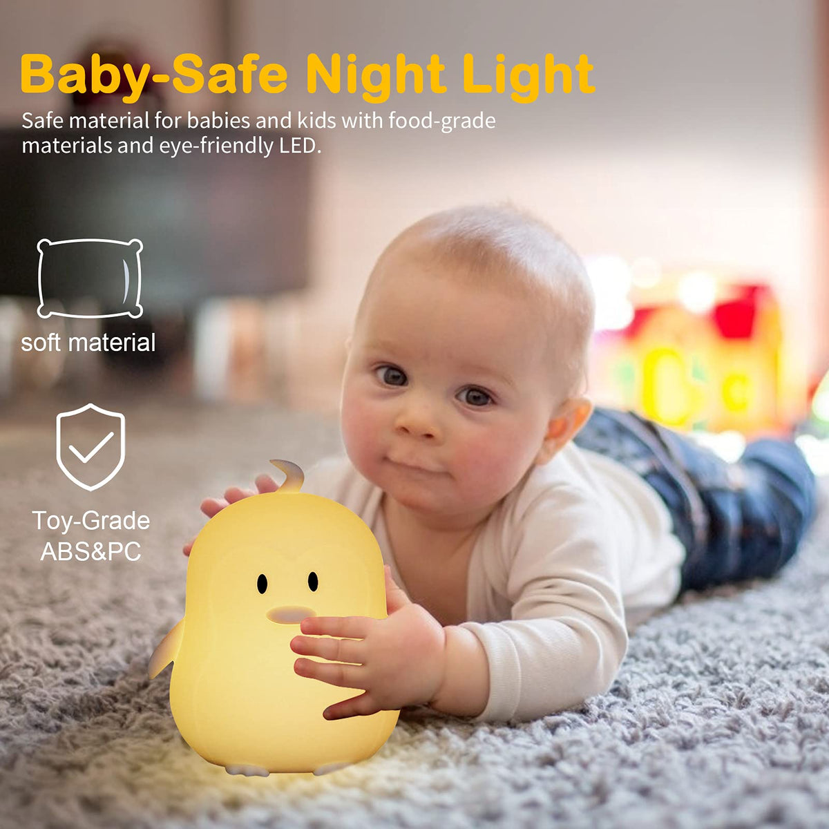 Kids Night Light Penguin Gifts Night Lights - Lamp 9 Colors Cute Animal Desk Lamp Cool Aesthetic Portable LED Tap Nightlight Bat