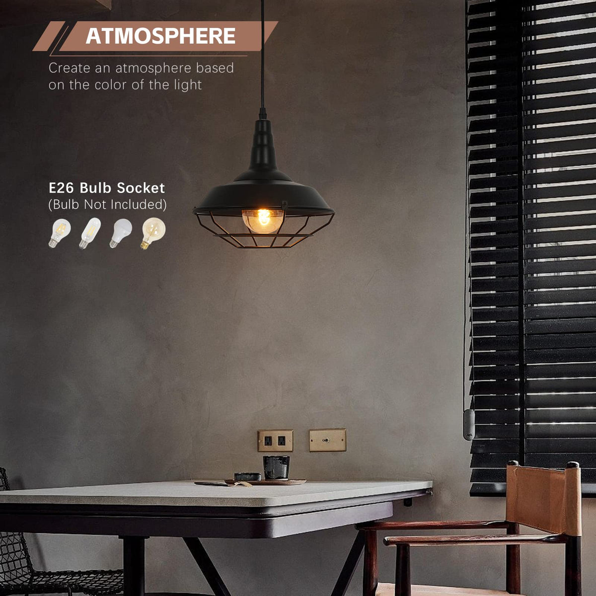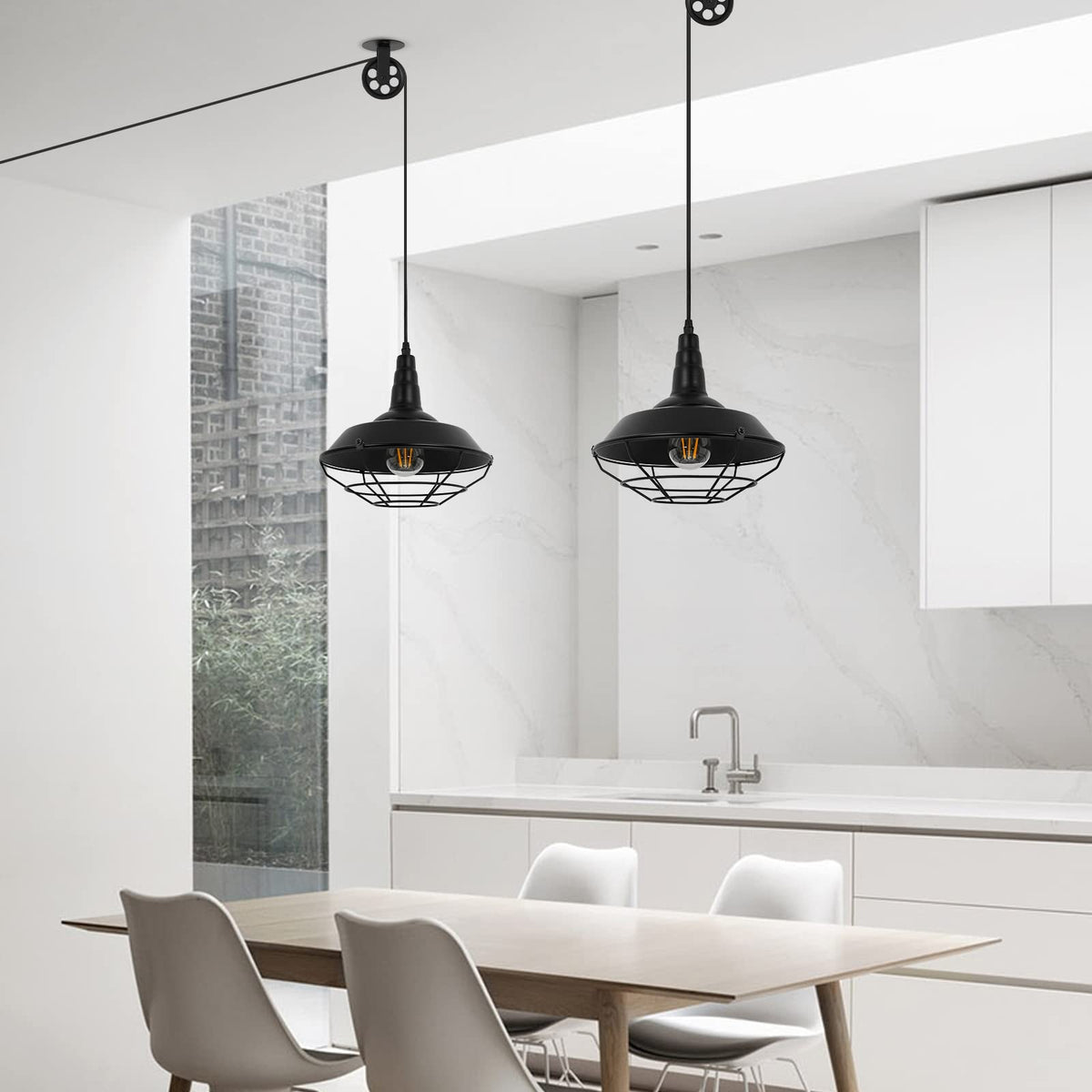 Kighsin Farmhouse Black Metal Wire Cage Plug In Pulley Pendant Lights With 19.4Ft Adjustable Cord On/Off Switch, Industrial Vint