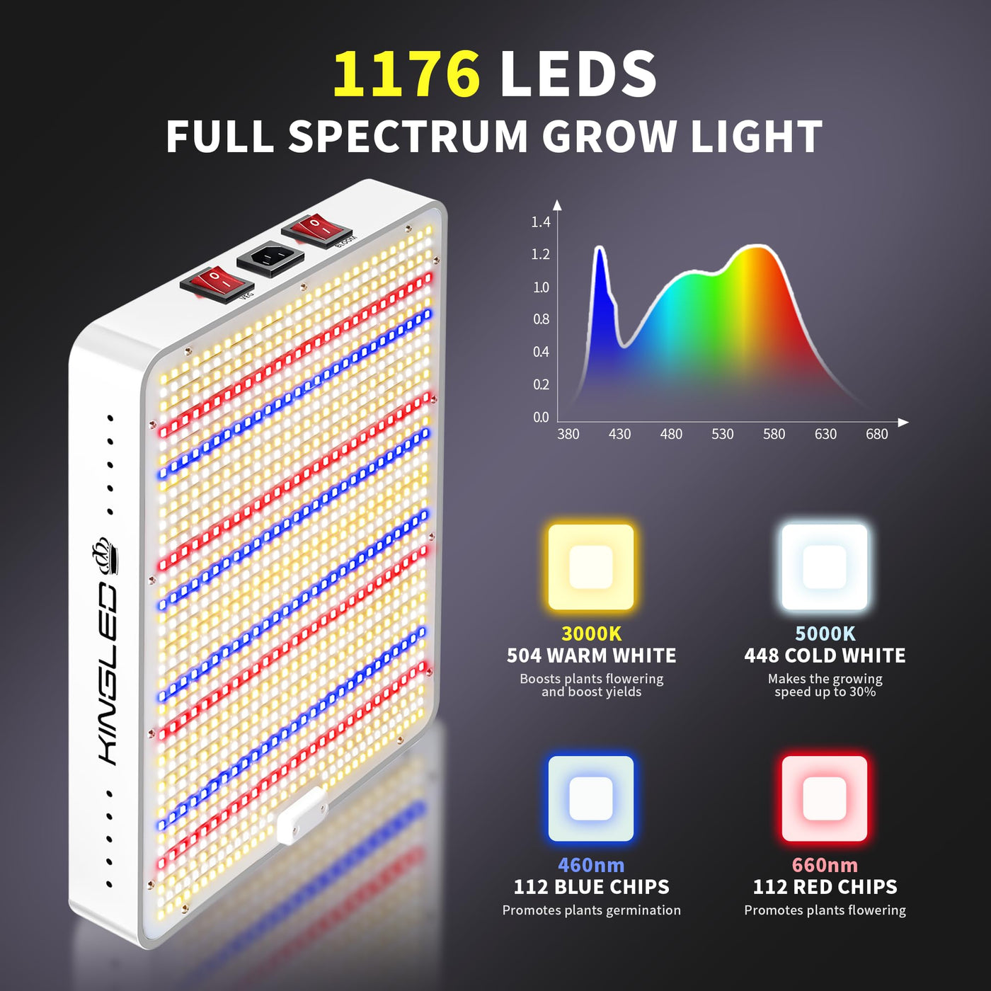 Q: Is the KingLED KP2000 energy-efficient compared to traditional grow lights?A: Yes, the KingLED KP2000 is highly energy-efficient, consuming only 200W while providing the equivalent output of a 1000W HPS/MH light. This efficiency not only reduces electricity costs but also contributes to a more sustainable growing environment.