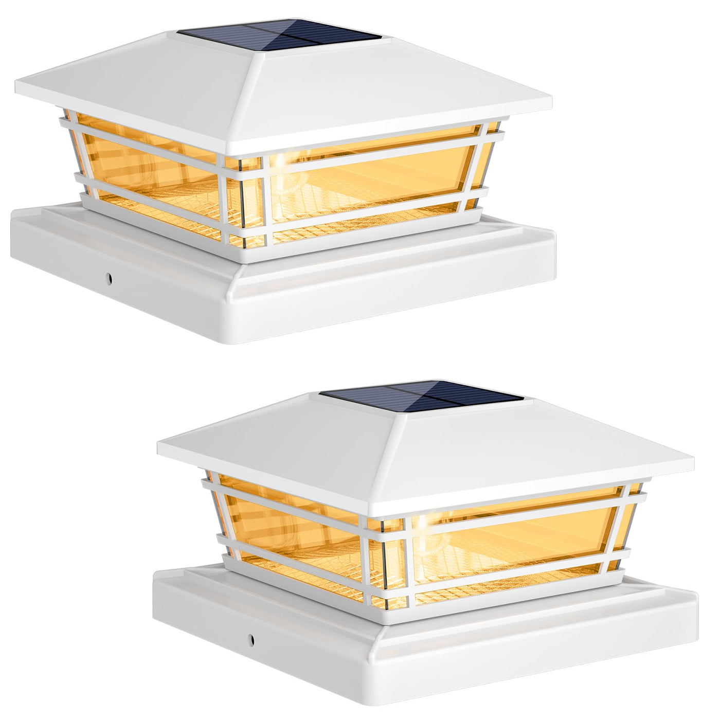 Kipeini Solar Post Cap Lights Outdoor 2Pack [Led Bulb, 2 Brightness Setting] Fence Post Solar Lights Waterproof For 4X4 5X5 Or 5.5X5.5 Wood Posts, Warm Bright Bulb Lighting For Garden Deck Yard White