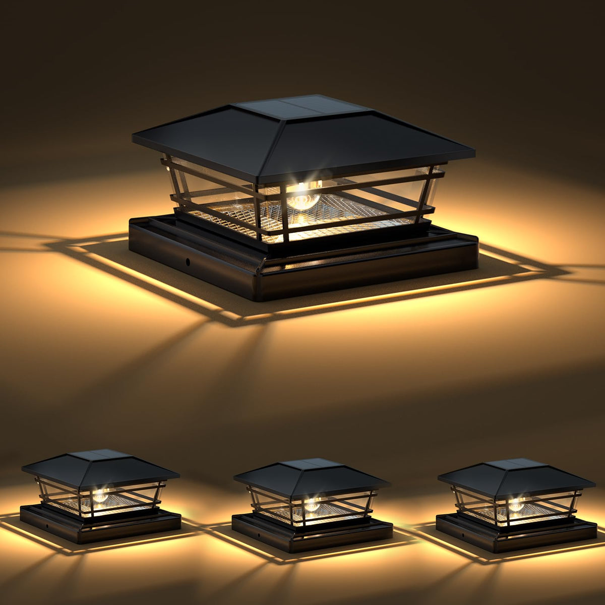 Kipeini Solar Post Cap Lights Outdoor 4Pack [Led Bulb, 2 Brightness Setting] Fence Post Solar Lights Waterproof For 4X4 5X5 Or 5.5X5.5 Wood Posts, Warm Bright Bulb Lighting For Garden Deck Yard