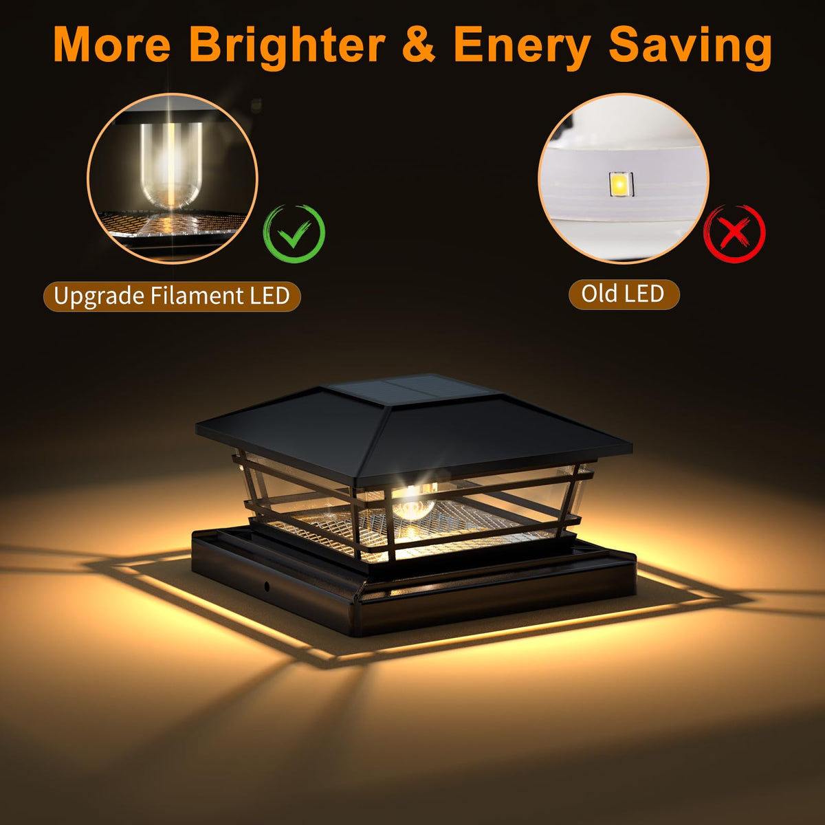 Kipeini Solar Post Cap Lights Outdoor 8Pack [Led Bulb, 2 Brightness Setting] Fence Post Solar Lights Waterproof For 4X4 5X5 Or 5.5X5.5 Wood Posts, Warm Bright Bulb Lighting For Garden Deck Yard