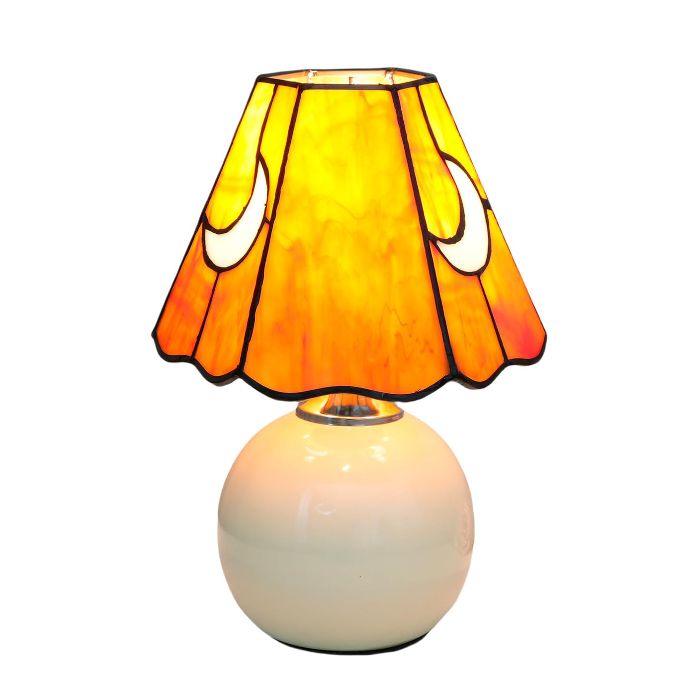 Mushroom shape ceramic base, moon stained glass shade, unique design with classic style and modern design make this lamp blend with any room, it's not just a table lamp, it's more like a work of art. Light source: E26 Switch: On-line press switch / line length 160CM. Product Dimensions: 11"H x 7.5"W x 4.7"D. Weight: 1.0KGS The high-quality glass shade of this bedside lamp from KIPHEPI helps to gently diffuse light throughout the room in an even and pleasant manner without flicker, making it perfect for any space. The lamp has no blue light and no radiation, so it can be used by both the elderly and children. Small table lamp with wide applications It can be used as a decorative moon night light, or as a mini lamp for sideboards, bedrooms, living rooms, hallways, study rooms, nurseries, restaurants, coffee shops, bars, etc. Great gift for girls and women . Customer Satisfaction Service We provide professional customer service before and after your purchase. If there is any quality problem with the table lamp, please feel free to contact us.