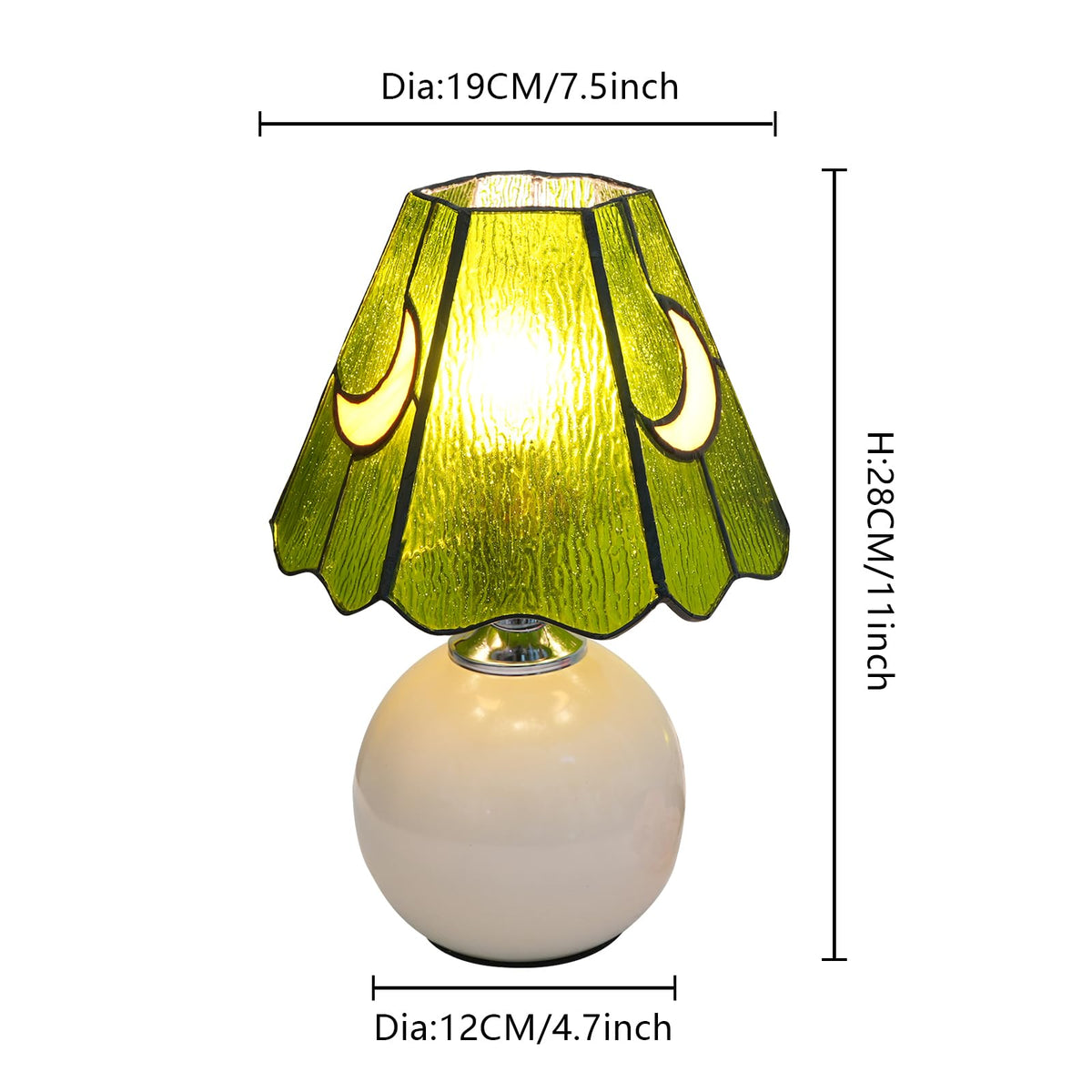 Mushroom shape ceramic base, moon stained glass shade, unique design with classic style and modern design make this lamp blend with any room, it's not just a table lamp, it's more like a work of art. Light source: E26 Switch: On-line press switch / line length 160CM. Product Dimensions: 11"H x 7.5"W x 4.7"D. Weight: 1.0KGS The high-quality glass shade of this bedside lamp from KIPHEPI helps to gently diffuse light throughout the room in an even and pleasant manner without flicker, making it perfect for any space. The lamp has no blue light and no radiation, so it can be used by both the elderly and children. Small table lamp with wide applications It can be used as a decorative moon night light, or as a mini lamp for sideboards, bedrooms, living rooms, hallways, study rooms, nurseries, restaurants, coffee shops, bars, etc. Great gift for girls and women . Customer Satisfaction Service We provide professional customer service before and after your purchase. If there is any quality problem with the table lamp, please feel free to contact us.