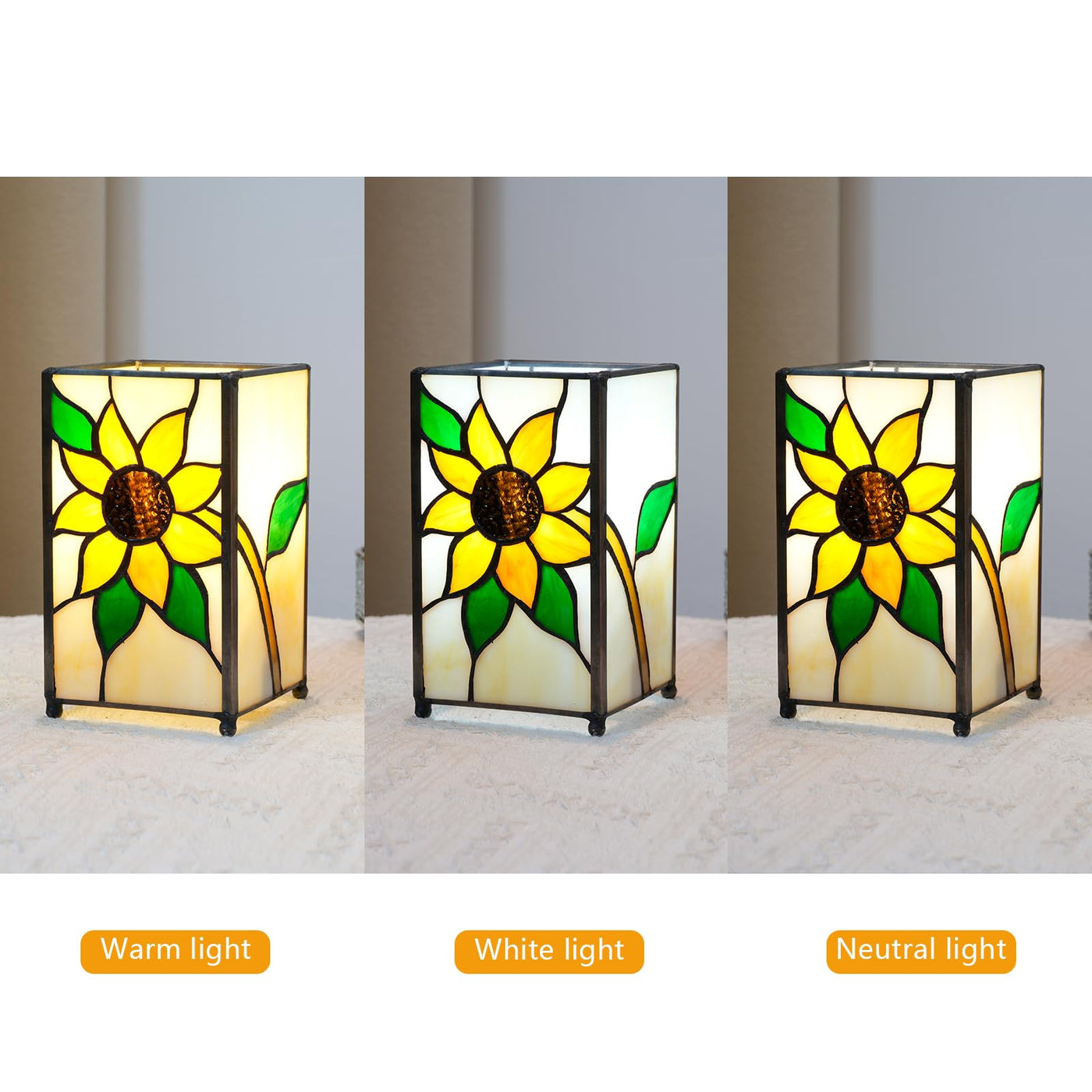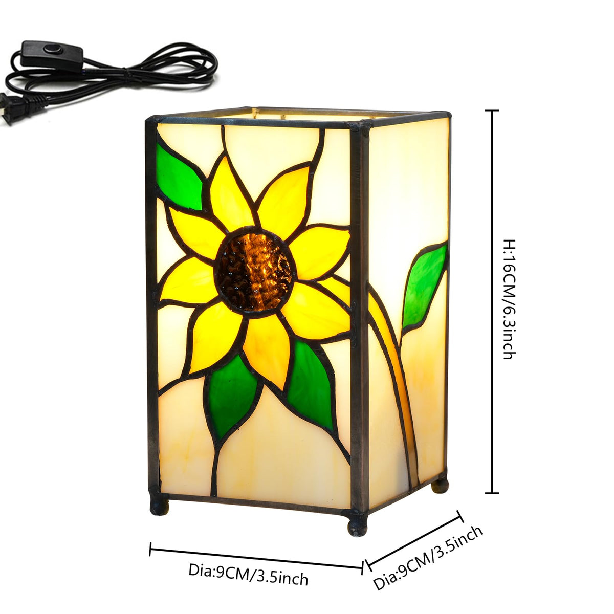 Stained Glass Lamp: Full Of Mid-Century Style And Exquisite Design. It Can Be Used For Decades Without Discoloration Or Fading. Sunflower Table Lamps With Delicate Pastel Tones Have Become Popular Since The 1970S. Exquisite Handmade Stained Glass Lamp Shade:Tiffany Style Sunflower Lamp Handmade With Stained Glass Is Not Only A Lighting Fixture But Also A Work Of Art That Adds Elegance And Beauty To Any Space. Its Timeless Design Ensures Lasting Appeal. Bedside Lamp: 3.5 Inches Long 3.5 Inches Wide 6.35 Inches High 110V Us Standard Plug Simple And Convenient No Need To Buy Other Adapter Transformers. E12 Led Bulb Has Warm Light Cold Light Warm White Effect The Product Can Be Used For Switch Button Control. In Addition E12 Classic Socket Makes It Easier For You To Replace The Smart Color Dimmable Atmosphere Bulb. Cute Night Light:Perfect For Bedroom Bedside Lamp Living Room Dining Room Study Office Coffee Shop Bar Museum Lighting Children Girls Farmhouse Lamp. It Is A Touching Gift For Children Or Friends On Birthdays Christmas And Other Festivals Which Can Decorate The Space Accompany The Growth And Bring Warm Touch To Your Space And Loved Ones. Worry-Free Warranty: This Small Table Lamp Comes With A 1-Year Warranty. We Are 100% Committed To Making You Completely Satisfied With Our Reading Lamp. If For Any Reason You Are Not Satisfied With The Reading Lamp Please Contact Us And Get Our Support.