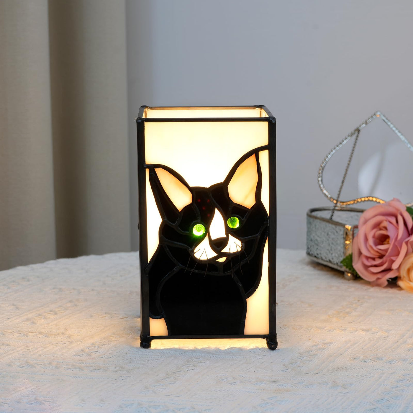 Kiphepi Tiffany Lamp Stained Glass Lamp Small Bedside Table Lamps For Living Room Home Decor Girls Women Birthday Halloween Christmas Thanksgiving Day Gift Black Cat