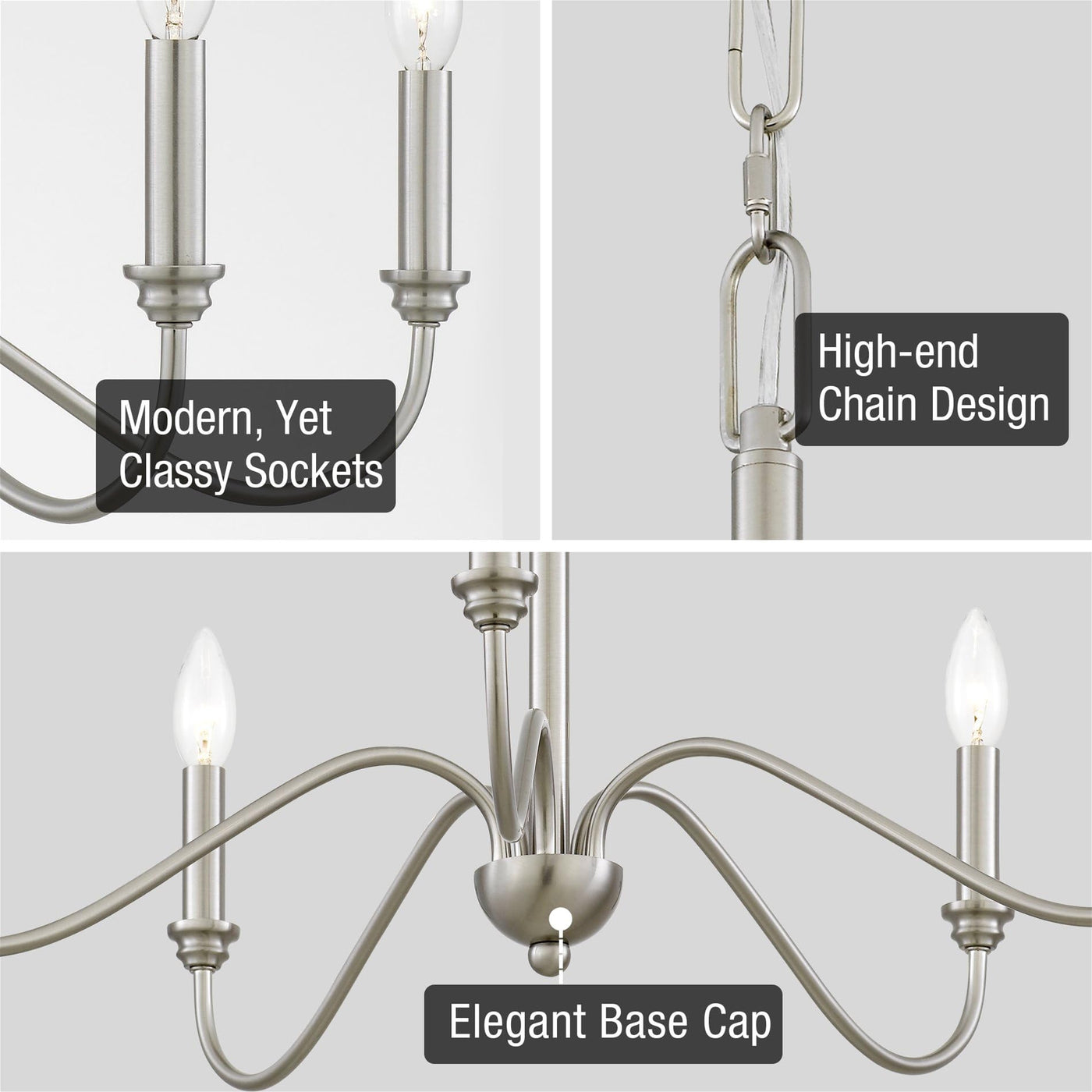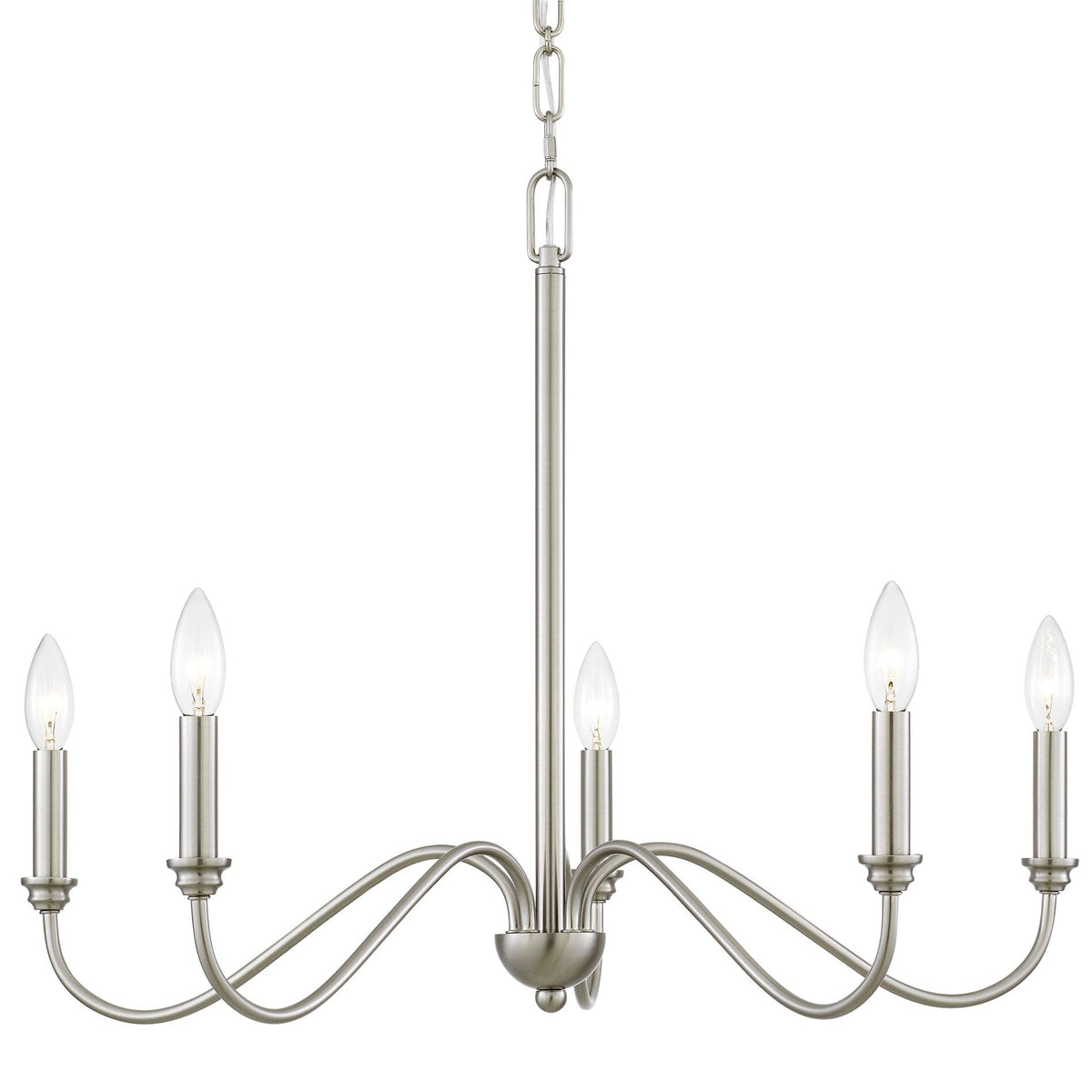 Kira Home'S Archer 5-Light Modern Chandelier Is A Stunning, Game Changer For Your Home. Its Unique Design Is Sure To Brighten Any Room, As This Light Fixture Boasts A Stunning, Classy Brushed Nickel Finish. Archer'S Long, Sweeping Arms Will Elevate Your Existing Style And Furnishings. It Is Made From High Quality Materials, Creating A Stand Out Piece In Any Space. Hang Above A Kitchen Island Or Breakfast Nook. Spruce Up A Foyer Or Stairway, Making A Great First Impression Upon All Who Enter Your Home. Archer Is Also The Perfect Chandelier For Dining Rooms And Living Rooms. Full Of Character, Archer Fits In A Variety Of Interior Styles And Decors Ranging From Farmhouse To Industrial To Vintage And Much More. Archer Suits Restaurants And Shops As Well. Adjust Hanging Heights To Your Liking As It Includes 96'' Of Chain, Giving It A Minimum/Maximum Hanging Height Of 25'' - 121''. Need To Set The Mood? Archer Works With Standard Dimmer Switches When Paired With Compatible Bulbs. This Chandelier Is Ul Approved.Includes: Mounting Hardwarelighting Direction: Up/Down Lightlighting Source Type: Incandescent, Led, Cflmounting Style: Ceilingbase Type: E12Prop 65 Warning: Yesprop 65 Harm: Cancer, Birth Defects, And/Or Other Reproductive Harmsprop 65 Chemicals: Leadsafety Rating: Ul Listedlocation Rating: Dry