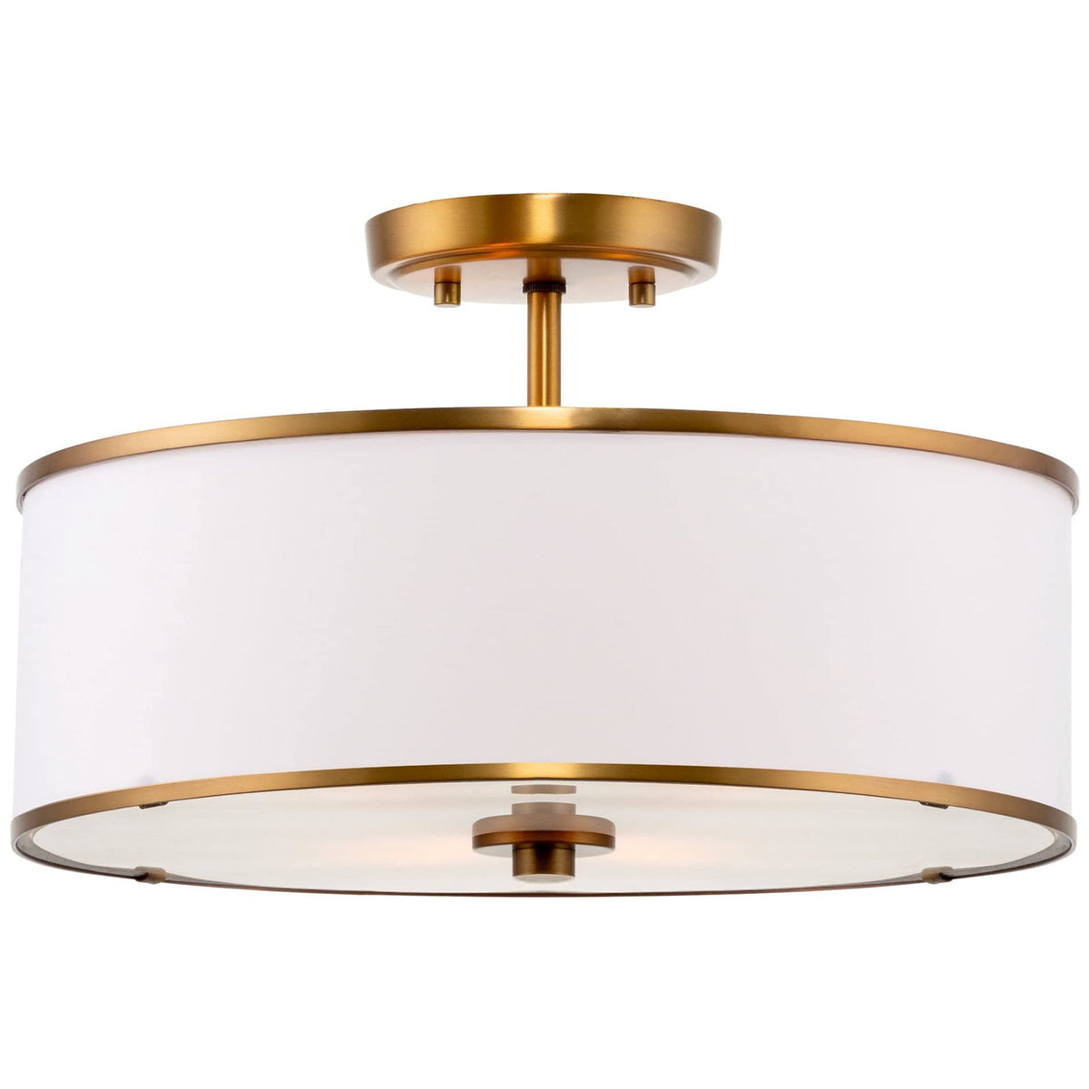 Kira Home Chloe 15in Retro Modern 3-Light Semi-Flush Mount Ceiling Light, Warm Brass, Fabric/Metal, Model RV-CSF117-2494-WB-WT