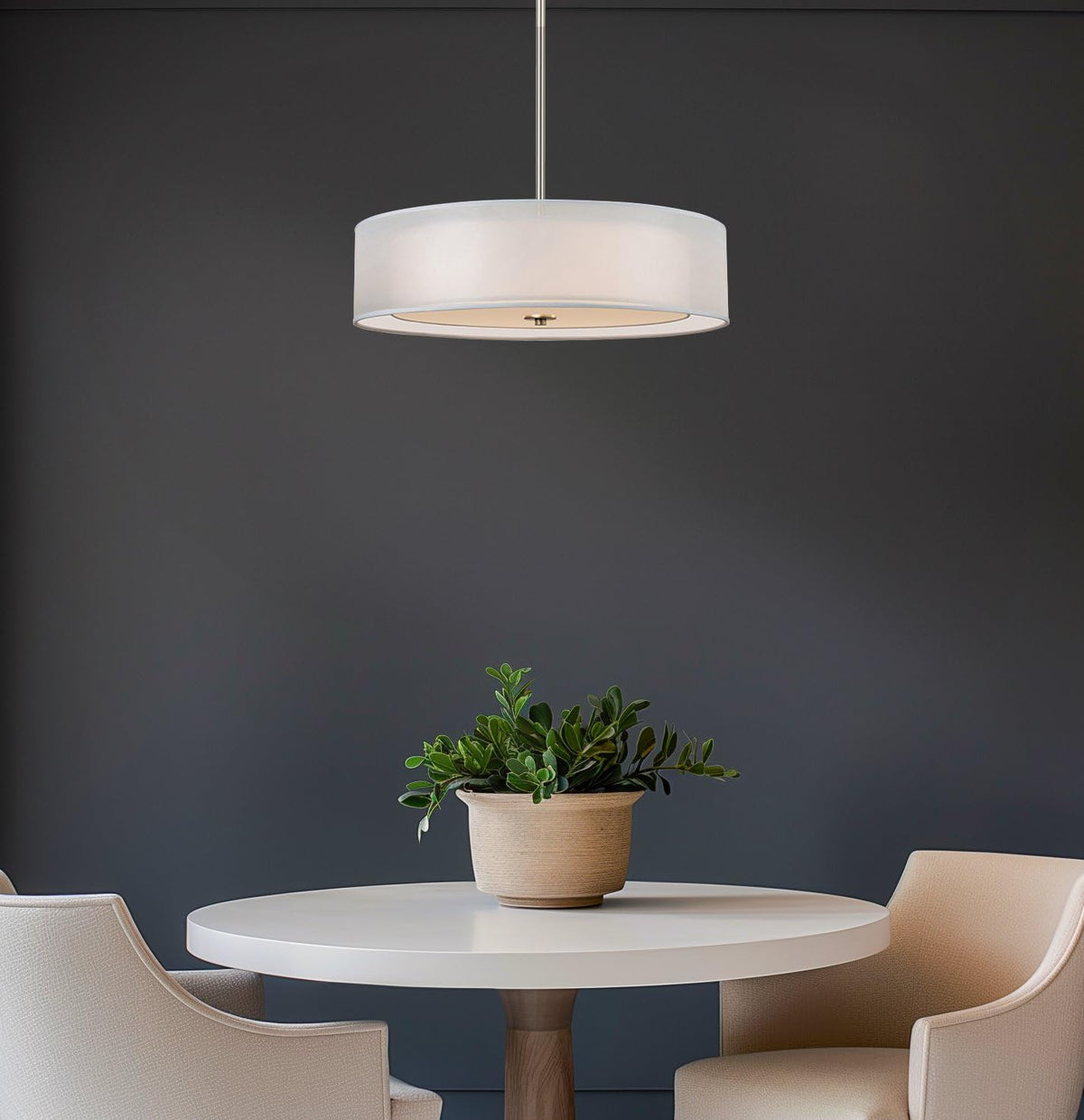 - **Elegant Design**: Featuring a chic brushed nickel finish, this pendant light radiates sophistication. The sheer outer shade beautifully complements the inner pure white fabric shade, creating a warm and inviting glow that enhances any room's ambiance.