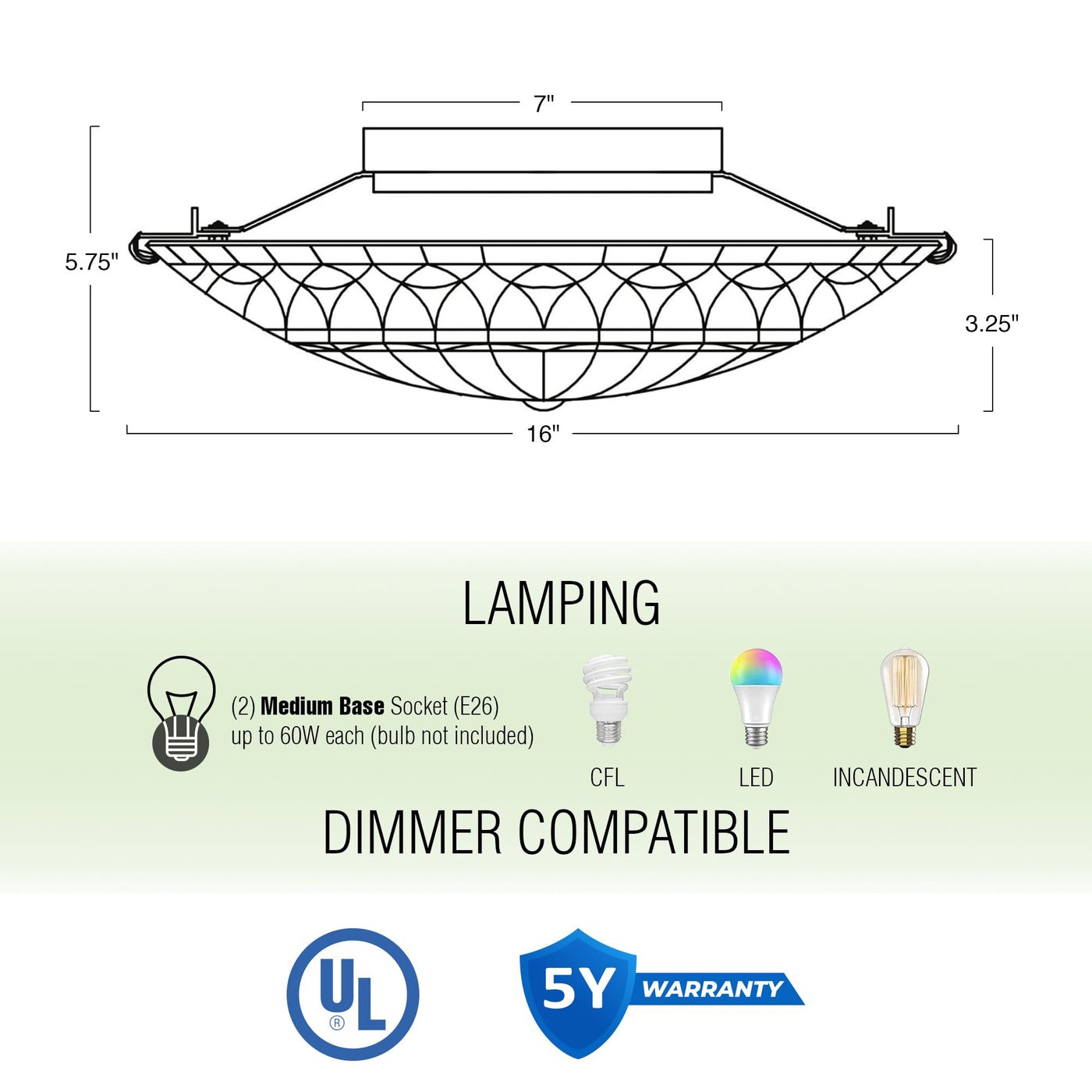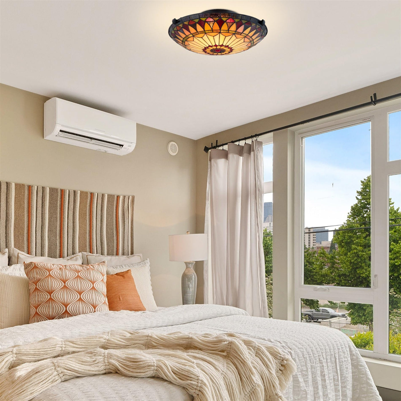 The Mateo 2-Light Round Flush Mount Ceiling Light Features A Uniquely Styled 16 Tiffany Glass Shade. The Tiffany Glass? Beautiful Array Of Colors Is Enhanced By The Light Gleaming Through. When Paired With Its Sleek Black Body Finish The Mateo Is Sure To Shine Above The Rest.Includes: Mounting Hardwarelighting Direction: Downlightlighting Source Type: Incandescent Led Cflmounting Style: Ceilingindoor/Outdoor Usage: Indoorbase Type: E26Shade Shape: Bowlshade Material: Glassprop 65 Warning: Yesprop 65 Harm: Cancer Birth Defects And/Or Other Reproductive Harmsprop 65 Chemicals: Leadsafety Rating: Ul Listedlocation Rating: Dry