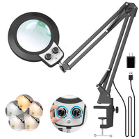 The Latest Power Supply Solution: Magnifying Glass With Light Adopts Double Knob Adjustment Scheme, Unlike Traditional Keys, Which Causing The Lamp Holder To Fall. Turn On The Switch, The Knob On The Left Can Adjust Any Brightness You Want, And The Knob On The Right Can Adjust Any Color Temperature You Want, So Our Magnifying Glass Lamp Can Adjust The Most Suitable Color And Brightness Combination For You. Suitable For Any Of Your Favorite Scenes. 10X Real Glass Optical Magnifier: We Use 10X Transparent Colorless Glass Magnifying Lens, Provides A Clear And Wider View, Which Is Very Friendly For Anyone Who Needs To Continuous Close Focus Work Or Any Vision Problems. 10X Magnifying Lamp Very Suitable For Crafts, Doing Cross Stitch, Reading, Crafts, Jewelry, Fly Tying, Crocheting, Miniature Painting, Repair, Sewing, Solderin Or Other Hobbies That Require Small Pieces. Kirkas, Give You A Clear World, Enjoy Your Hobbies. Adjustable Swing Arm And Metal Clamp: Release Your Hands And Enjoy Our Magnifying Light With Convenient Swinging Arm. The Swing Arms Designed With 4 Powerful Springs And 3 Knots To Provide Sturdy Support. In Addition, The Heavy Metal Clip Can Be Clamped At The Edge Of The Table With A Max Of 2.1 Inches, The Upper And Lower Sides Of The Clip Are Equipped With Foam Pads, Which Completely Prevent Your Table From Being Scratched And Increase The Stability Of The Clip. Choose The Right Way To Use Your Magnifying Desk & Clamp Lamp At Will. Memory And Eye Protection Magnifying Light: When You Adjust The Color And Brightness You Want, Turn Off The Switch Directly. The Next Time You Turn On The Switch, It Will Be Your Exclusive Setting, And You Don'T Need To Adjust It Again. The Led Magnifying Lamp Emits Uniform And Soft Light, With No Flicker, No Glare, No Shadow, Which Can Effectively Relieve Eye Fatigue And Protect Your Eyes. Ideal For Working, Sleeping, Studying, Reading Or Relaxing.
