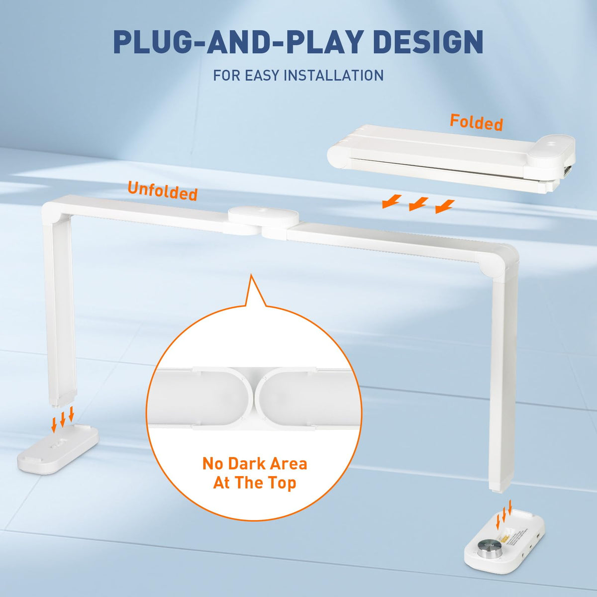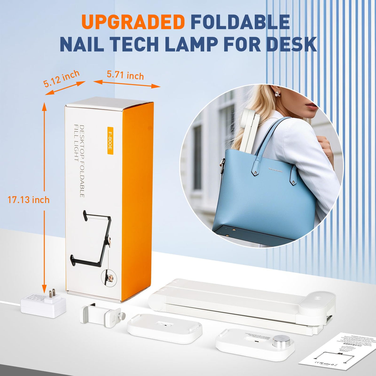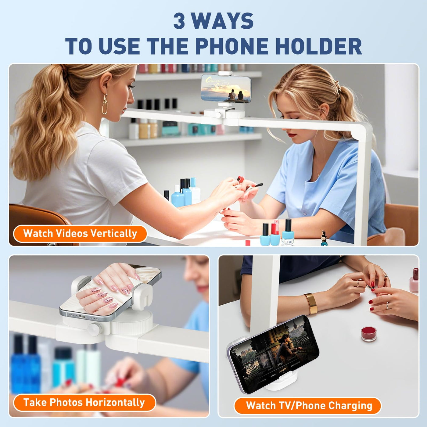Extra Large Portable Desktop Nail Lamp: The 34-inch large nail tech lamp for desk adopts a foldable design, which saves space and is easy to store. Suitable for scenes such as manicure, eyelashes, tattoos, handicrafts, embroidery, reading, painting, beauty professionals, etc. 3 Color Modes and Adjustable Light: The nail light for desk has three colors, namely cold light, cold and warm light, and warm light (6000-3000K), and the infinite knob adjusts the brightness (100%-10%), which can meet your needs. High light efficiency, long life, good light color, no glare, no shadow. The lamp for nail tech makes your hobbies and work operations more efficient. Infinite Knob and Phone Charging Function: Nail tech light long press to turn on/off the light, short press to switch the light mode, rotate left and right to adjust the brightness and color temperature, with A&C port mobile phone charging function, the phone is constantly disconnected. Bring convenience to your life. The nail arch light is very suitable for commercial activities such as salons and home studios. 3 Ways Phone Holder Usage : Moon lamp nail techhorizontal/vertical placement on the top, record the manicure process/live broadcast, and there is a phone holder on the base, which is convenient for watching TV series and videos. The multifunctional nail art table lamp makes the manicure process no longer boring. Nail tech lamp is also suitable for manicure, eyelash extension, tattoo, reading and hand/facial care, makeup, online teaching and DIY projects. No Dark Area Top & Energy-saving Eye Protection: The arch light for nail techs adopts 456 high-quality LED lamp beads, which is highly energy-efficient and prolongs service life. No dark area on the top, no shadow, no flicker, full coverage lighting, eye-friendly lighting-perfect nail desk light technology requires studio-quality results. Goodbye Cumbersome Installation: Half moon light for nail desk with plug-in installation, just plug directly into the base to start using, which is faster than other products that require screwdriver installation. Our nail desk lamp for nail tech say goodbye to cumbersome installation and let you worry-free. If you have any questions, please contact us.