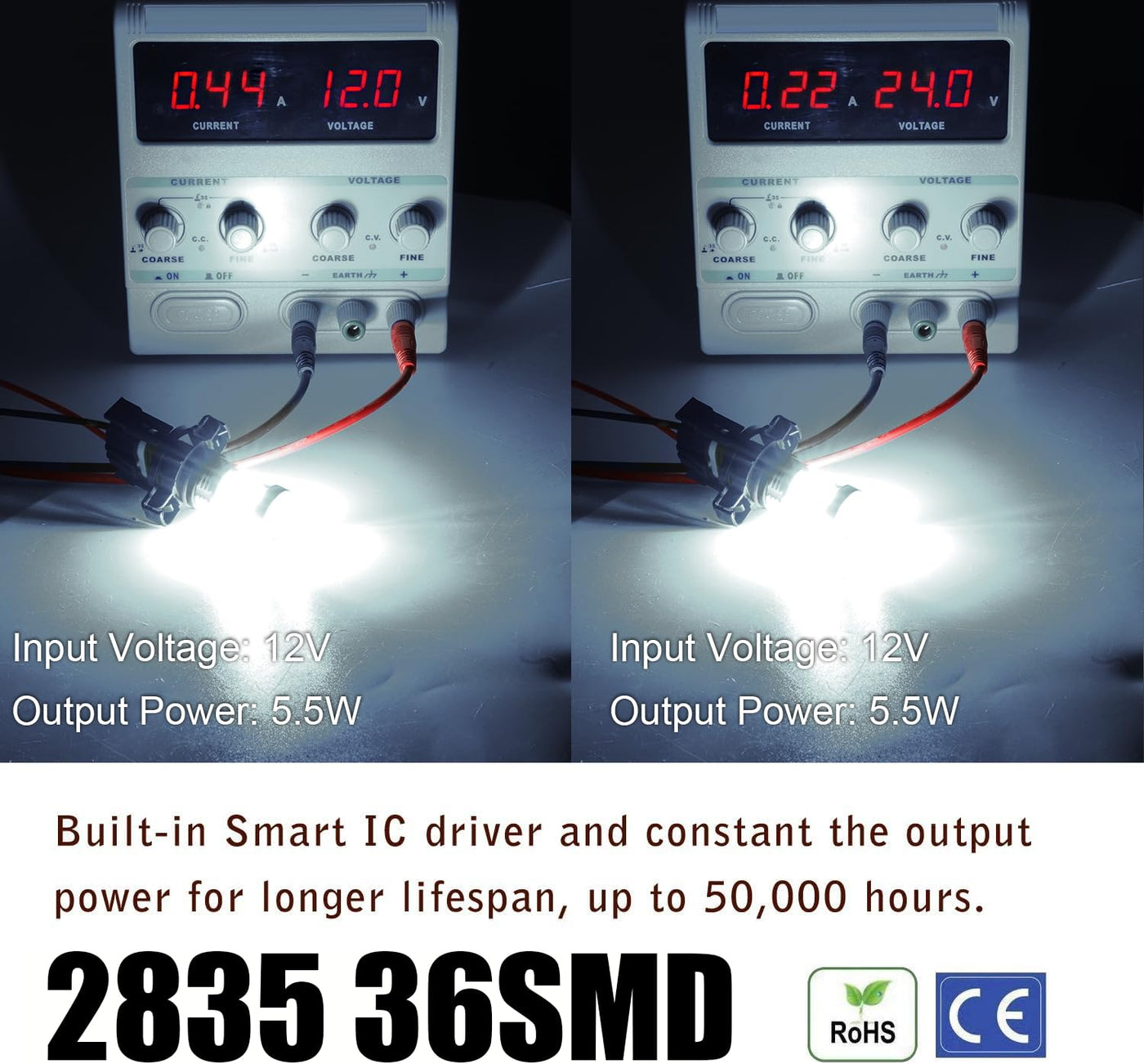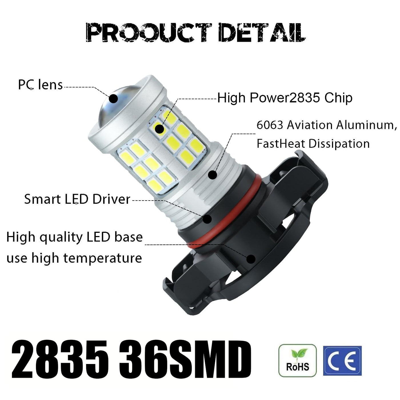 Extremely bright high power 2835 36 SMD 2504,PSX24W,12276 LED Fog Light Bulbs especially designed for replacing 2504,PSX24W,12276 fog light, or daytime running light (DRL) or corner lights.Package: including 2 pieces extremely super bright 2504,PSX24W,12276 2835 36 SMD LED bulbs.LED Chips: Equipped with customized 2835 36 SMD LED chips for 2504,PSX24W,12276 led fog light bulb.Application:Fog Light, or Daytime Running Light DRL or Corner Light. Plz note this bulb has no high/low beam function, it cant be used high/low beam headlight.IMPORTANT NOTICE! Please confirm the bulb base before placing an order.KISLED is a registered brand with Amazon. Please contact us if there is any questions or other requests!