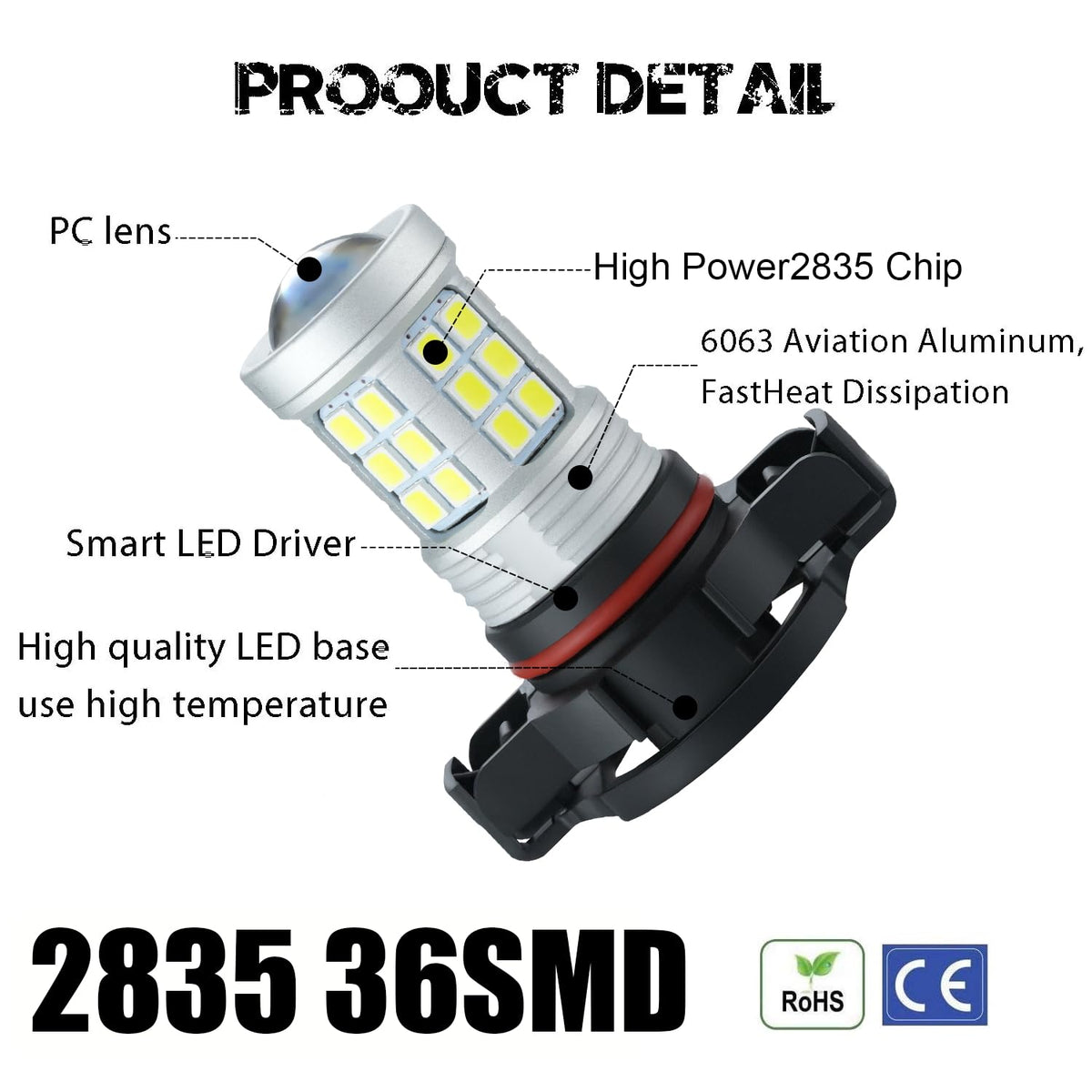 Kisled Super Bright 3000Lm 2504,Psx24W,12276 Led Fog Lights Bulbs Drl High Power 2835 Chips With Projector Lens Replacement For