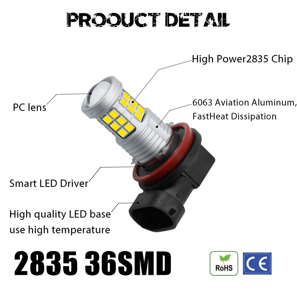 Extremely bright high power 2835 36 SMD H8 H16 H11 LED Fog Light Bulbs especially designed for replacing H8 H16 H11 fog light, or daytime running light (DRL) or corner lights. Package: including 2 pieces extremely super bright H8 H16 H11 2835 36 SMD LED bulbs. LED Chips: Equipped with customized 36SMD 2835 LED chips for H8 H16 H11 led fog light bulb. Application: Fog Light, or Daytime Running Light DRL or Corner Light. Plz note this bulb has no high/low beam function, it can’t be used high/low beam headlight. IMPORTANT NOTICE! Please confirm the bulb base before placing an order. KISLED is a registered brand with Amazon. Please contact us if there is any questions or other requests!