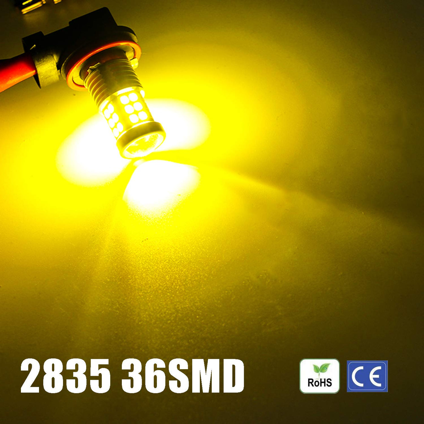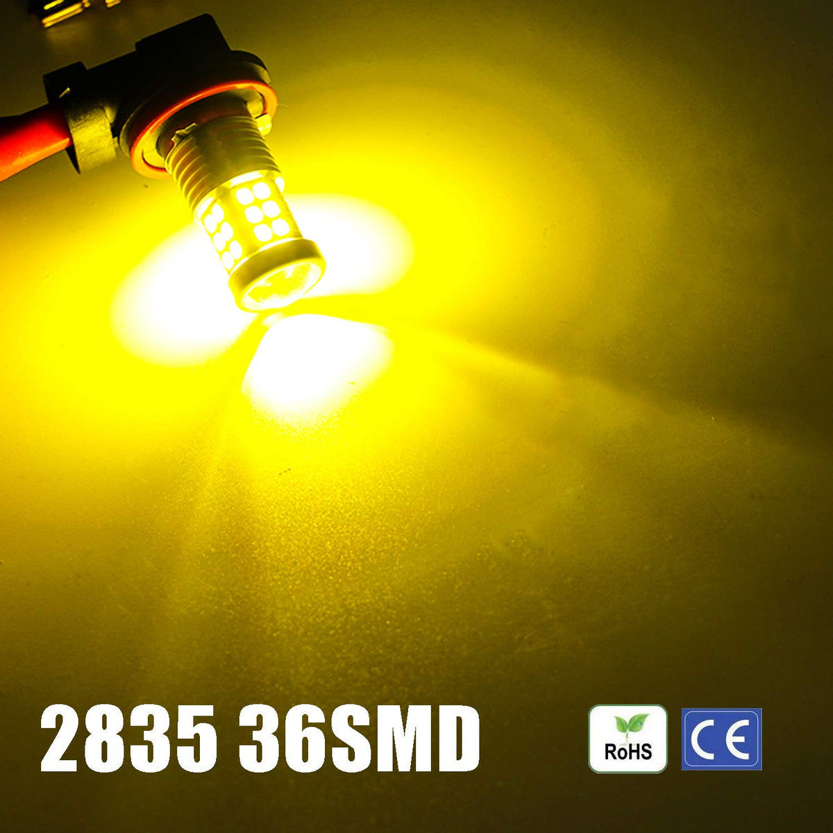 Kisled Super Bright 3000Lm H8 H11 Led Fog Lights Bulbs Drl High Power 3030 Chips With Projector Lens Replacement For Cars Trucks, Golden Yellow