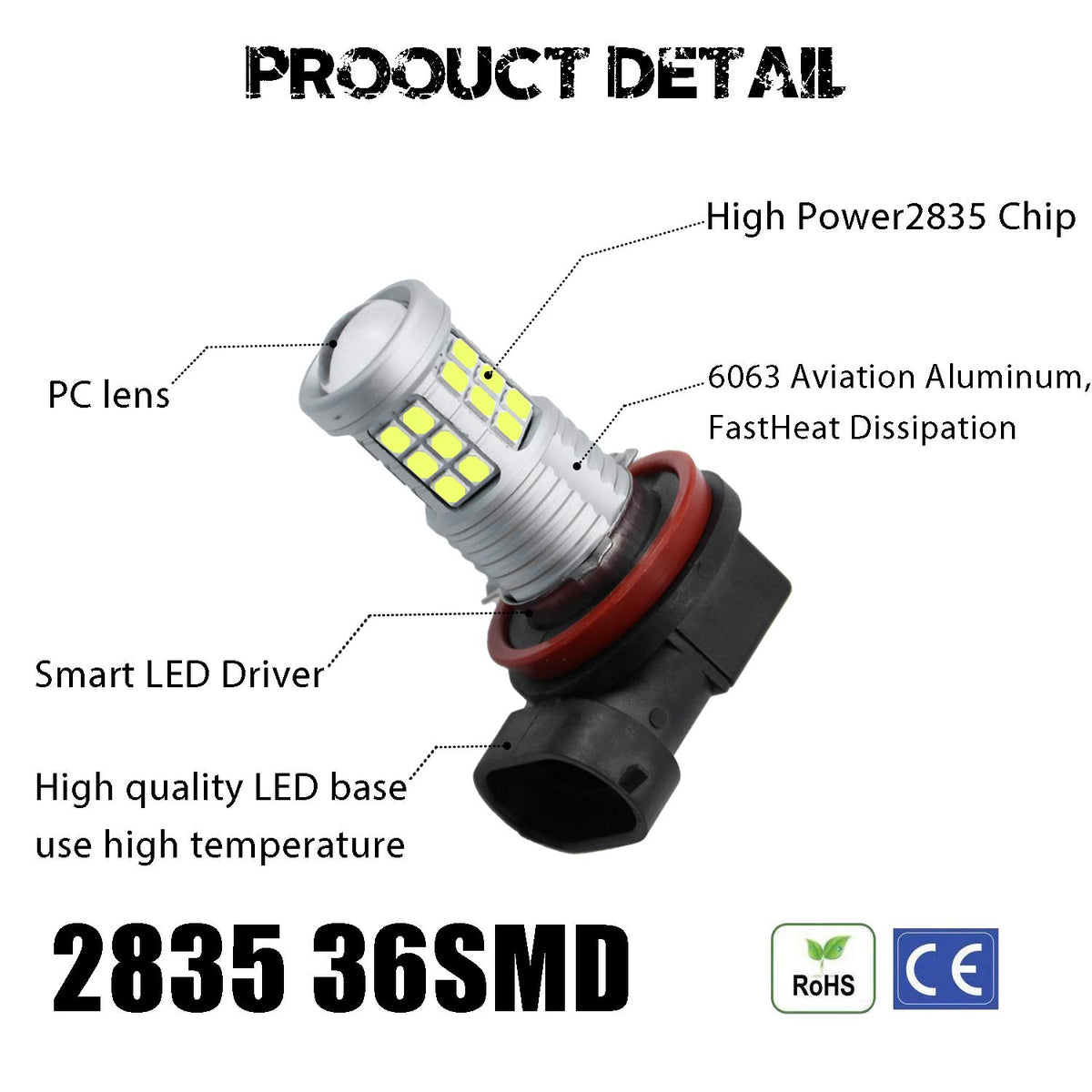 Extremely bright high power 2835 36 SMD H8 H16 H11 LED Fog Light Bulbs especially designed for replacing H8 H16 H11 fog light, or daytime running light (DRL) or corner lights. Package: including 2 pieces extremely super bright H8 H16 H11 2835 36 SMD LED bulbs. LED Chips: Equipped with customized 36SMD 2835 LED chips for H8 H16 H11 led fog light bulb. Application: Fog Light, or Daytime Running Light DRL or Corner Light. Plz note this bulb has no high/low beam function, it can’t be used high/low beam headlight. IMPORTANT NOTICE! Please confirm the bulb base before placing an order. KISLED is a registered brand with Amazon. Please contact us if there is any questions or other requests!