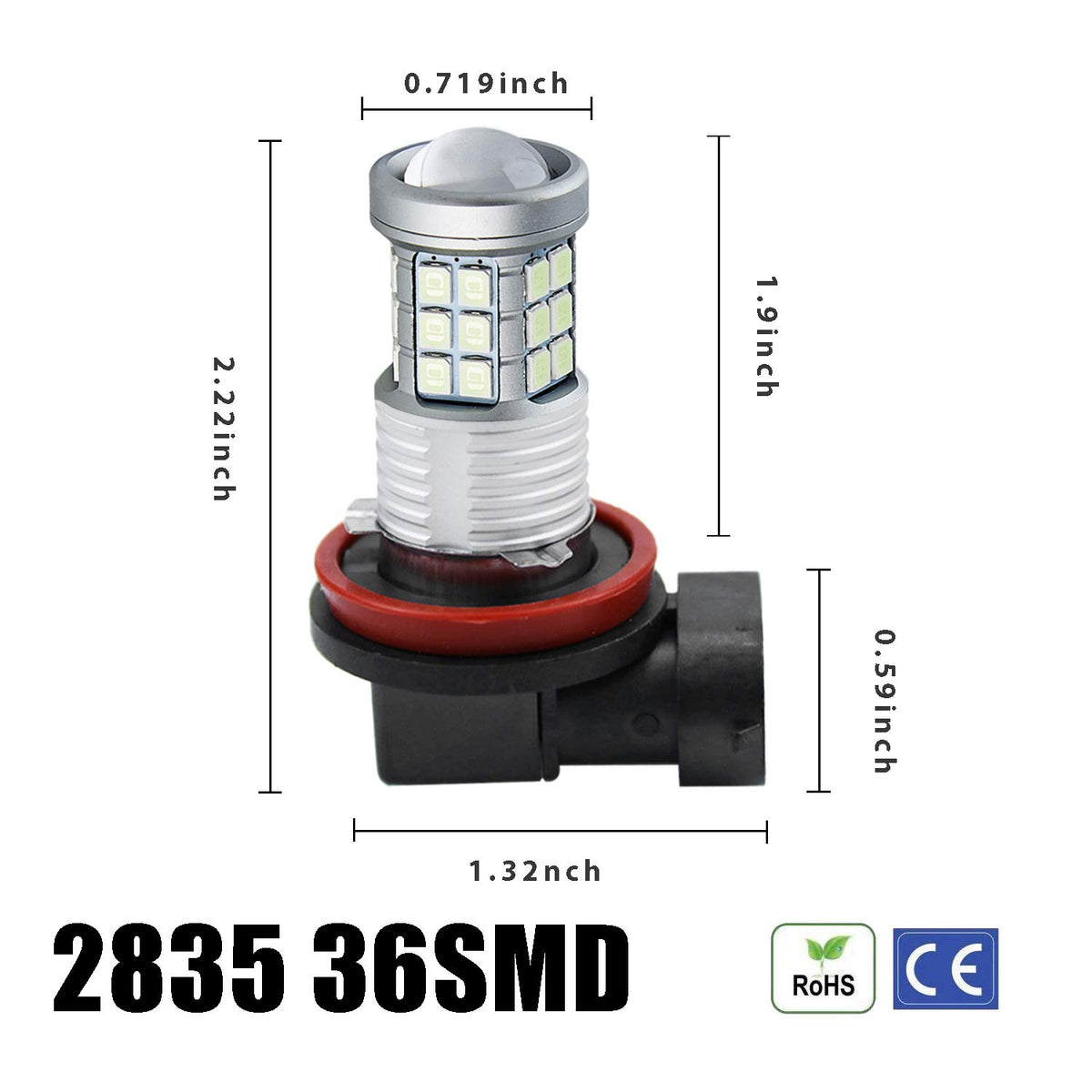(Set of 2) 1300 lumens per H8 H11 LED Bulb, total 2600 lumens for both H8 H11 LED fog lights bulbs; equipped with high illumination and high power newest customized 2835 LED chips. | Built-in Intelligent smart IC driver & 6063 aviation aluminum material for best heat dissipation and longer lifespan. | Working Power: 4.5W, Volts: 12V ~ 24V; Waterproof IP67; Optional Colors: 6000K Xenon White / 3000K Golden Yellow / 8000K Ice Blue | Used for upgrading stock dim halogen / incandescent 55W or 35W H8 H11 H16 H11LL H8LL fog light, daytime running light (DRL) or cornering light lamp for much more luxury looking and visibility. | Please double check owners manual or original bulb number to confirm before placing an order. Any other problem please feel free to contact us, we are always here to satisfy of you.