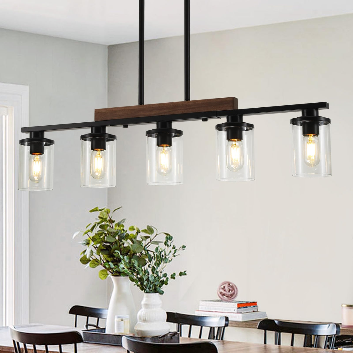 Kitchen Island Lighting,5-Light Dining Room Light Fixture/Chandelier Over Table,Black Modern Rustic Wood Ceiling Pendant Light F