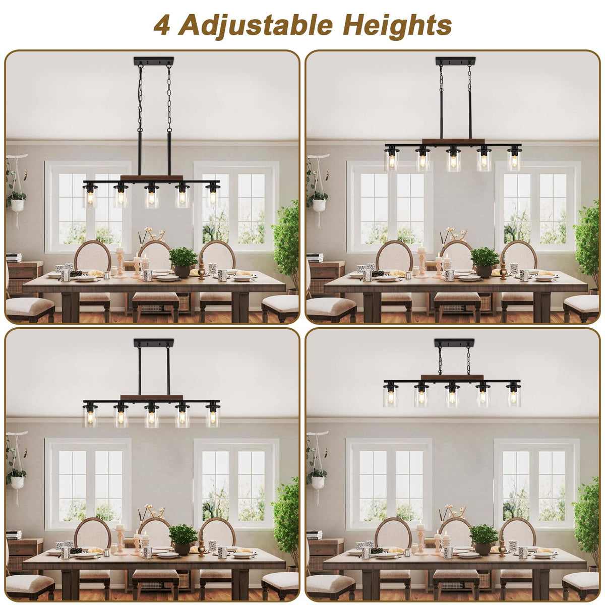 Kitchen Island Lighting,4-Light Dining Room Light Fixture/Chandelier Over Table,Black Modern Rustic Wood Ceiling Pendant Light Fixtures, With Clear Glass Shade,Farmhouse Chandelier