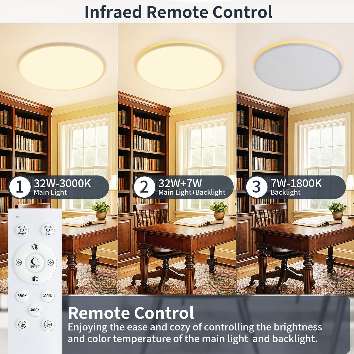 Q: Is the remote control included with the ceiling light?A: Yes, the ceiling light comes with a remote control for convenient dimming and switching between lighting modes. However, please note that the remote control does not include batteries.