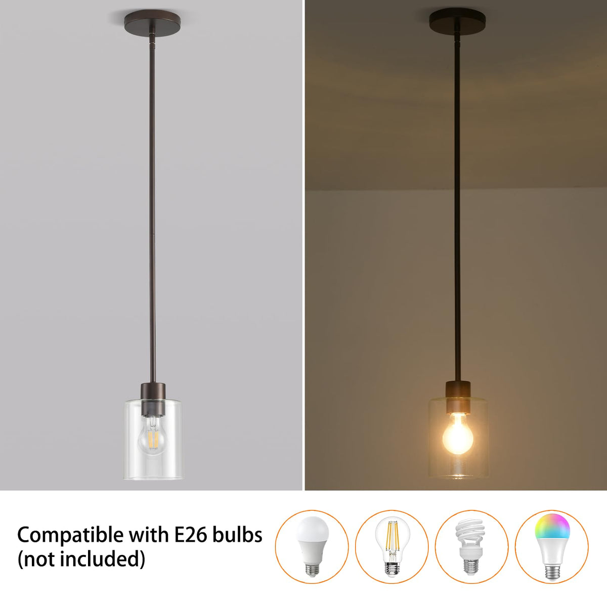 Q: What type of bulbs can be used with the KLSS Oil Rubbed Bronze Pendant Lights?A: The KLSS Oil Rubbed Bronze Pendant Lights are compatible with most standard medium base E26 bulbs. They can be dimmable when used with a compatible dimmer switch, and smart bulbs work well with this fixture.