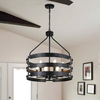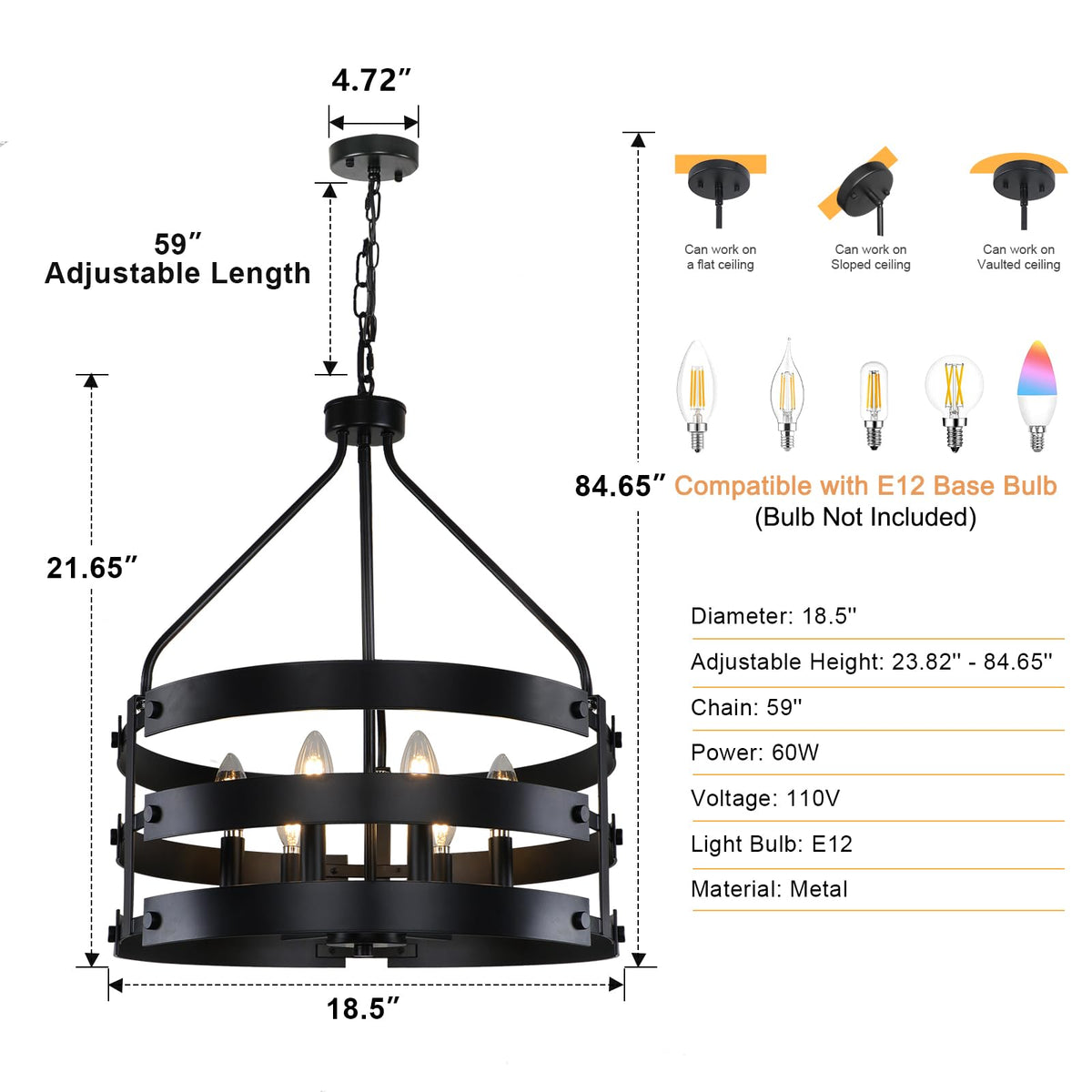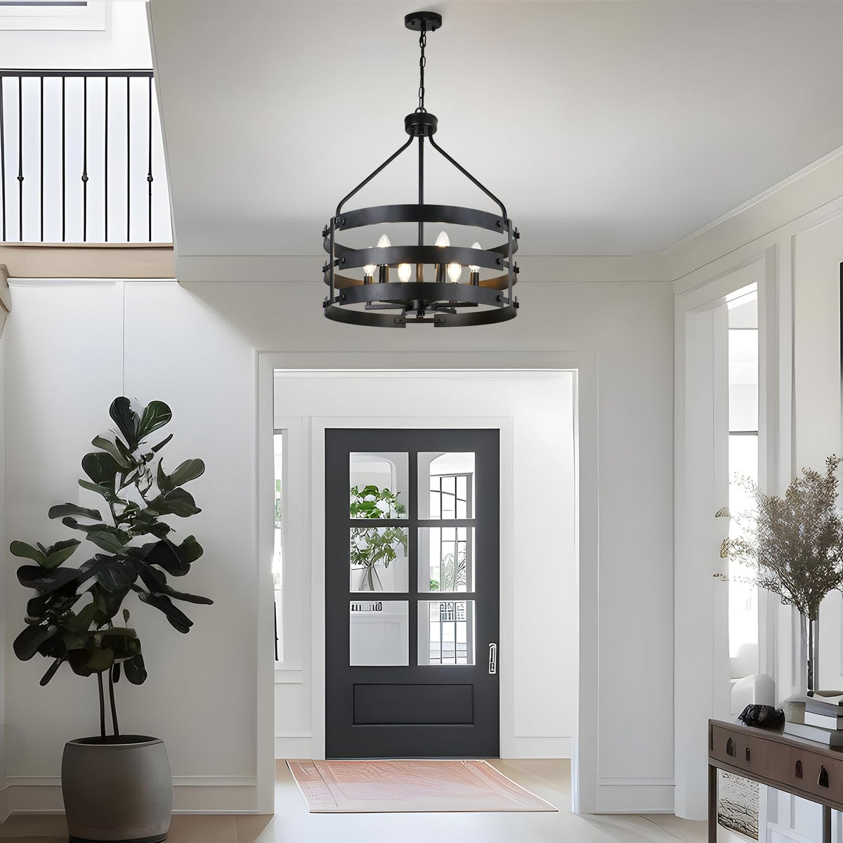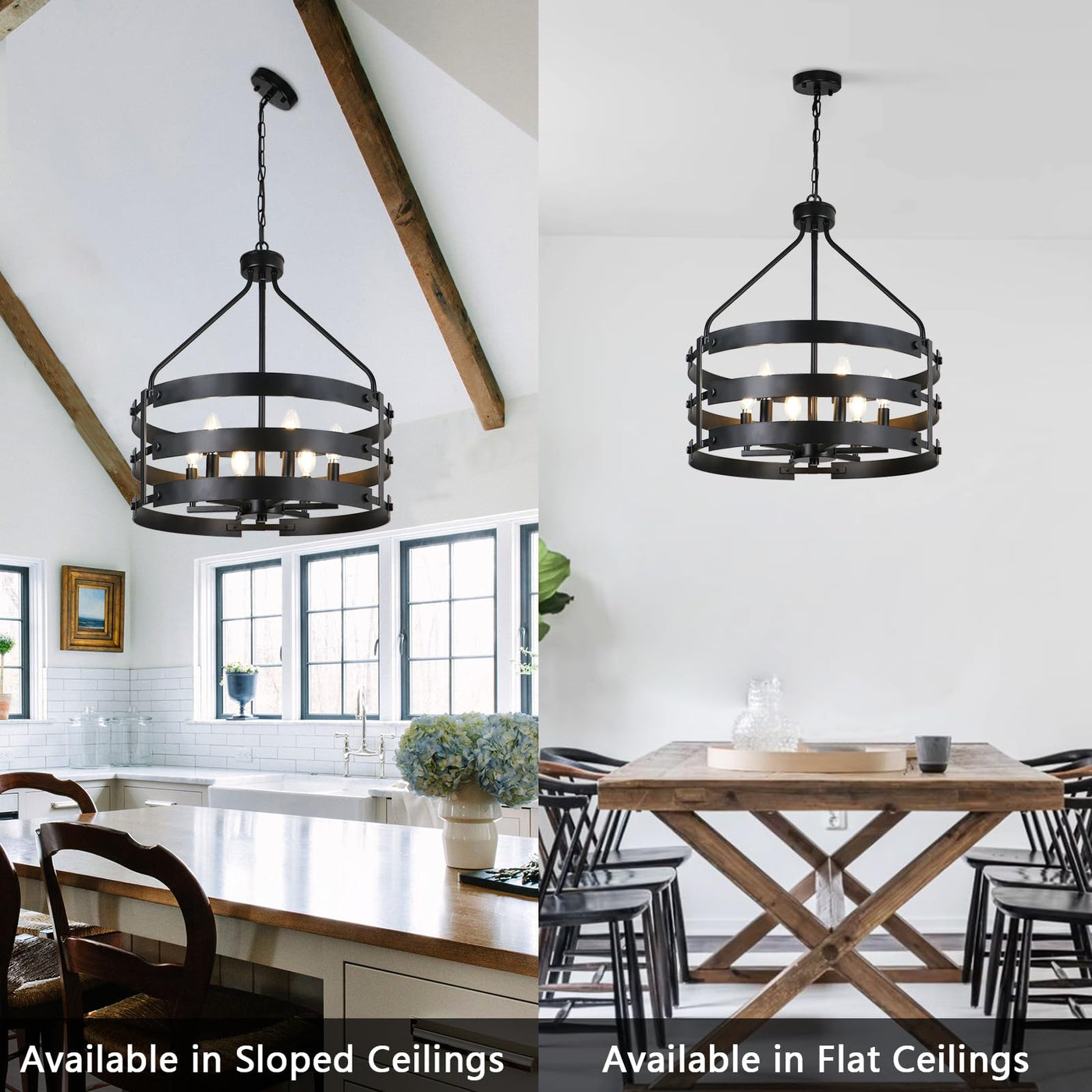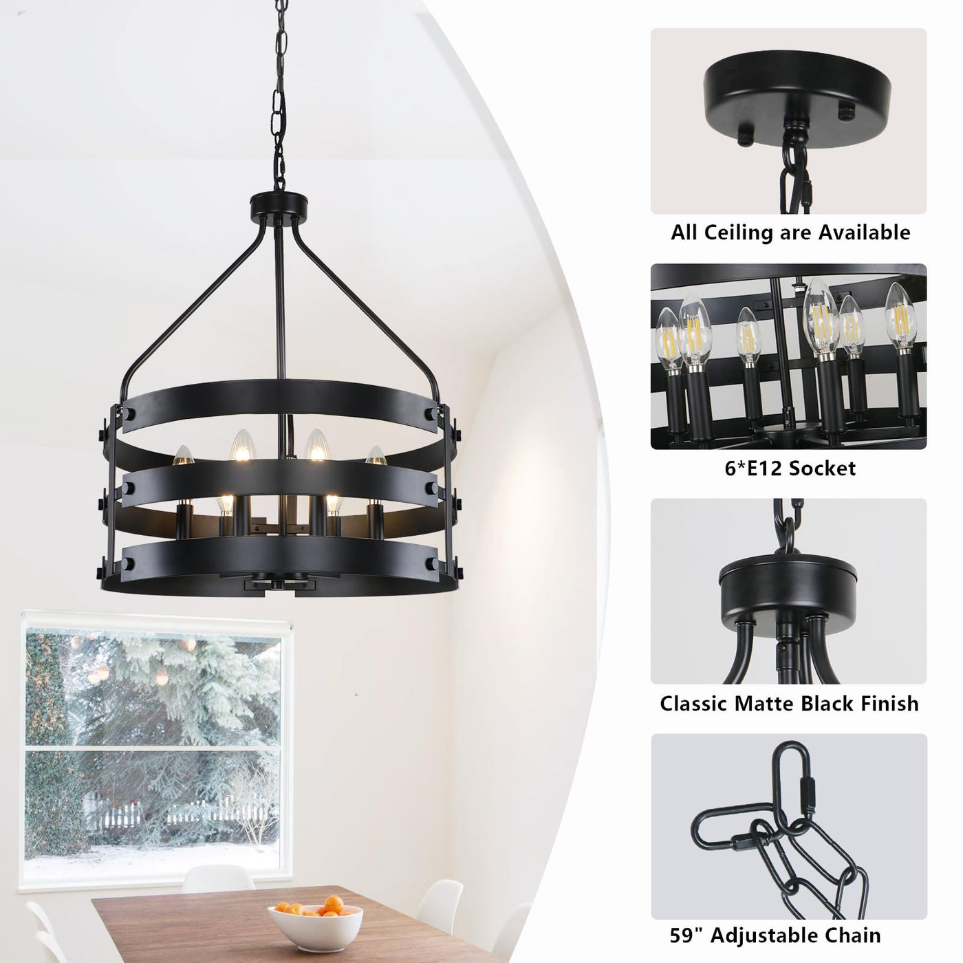 Kmaipem 6-Light Black Chandelier For Dining Room Light Fixture, 18.5'' Farmhouse Drum Chandeliers, Modern Industrial Metal Hangi