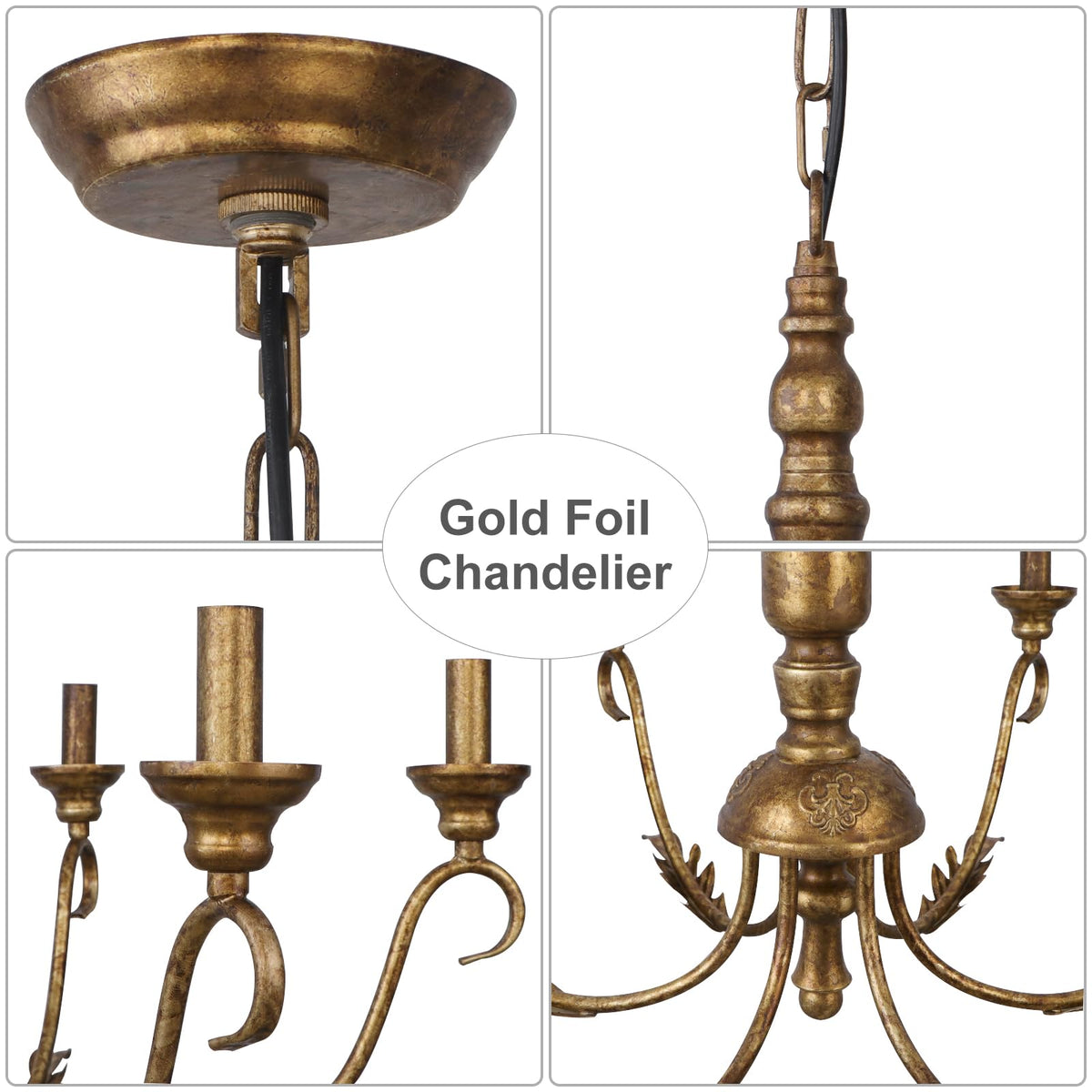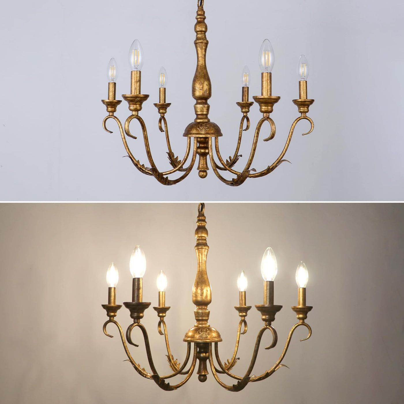 KMaiPem 6-Light Farmhouse Chandelier, 23.62'' Vintage Gold Chandeliers for Dining Room, Adjustable Rustic Metal Hanging Pendant Light Fixture for Kitchen Island Entryway Foyer Bedroom Hallway