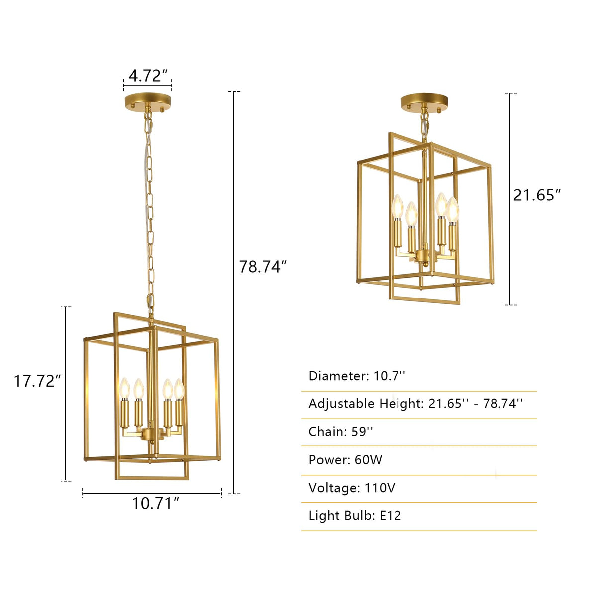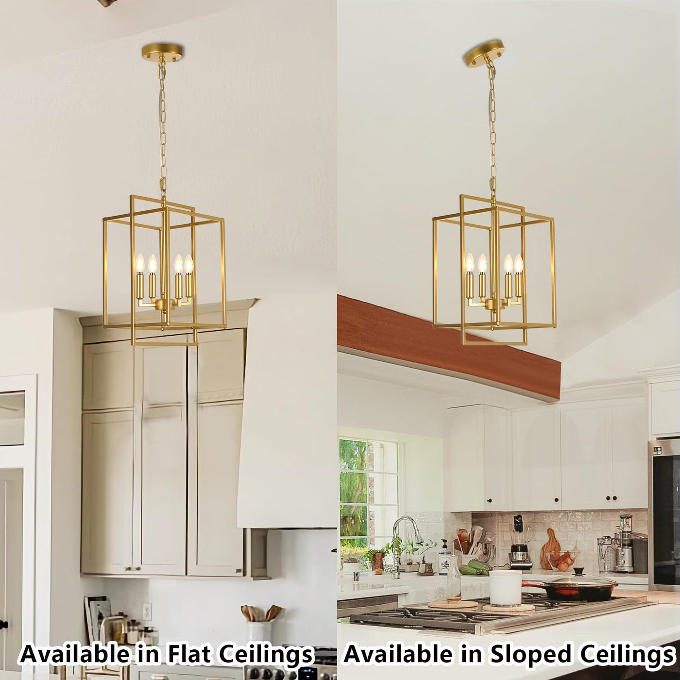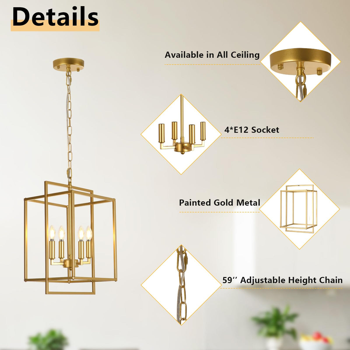 Kmaipem 4-Light Farmhouse Gold Chandeliers For Dining Room, Modern Gold Metal Chandelier, Adjustable Vintage Rustic Gold Chandelier For Kitchen Island Entryway Bedroom Foyer