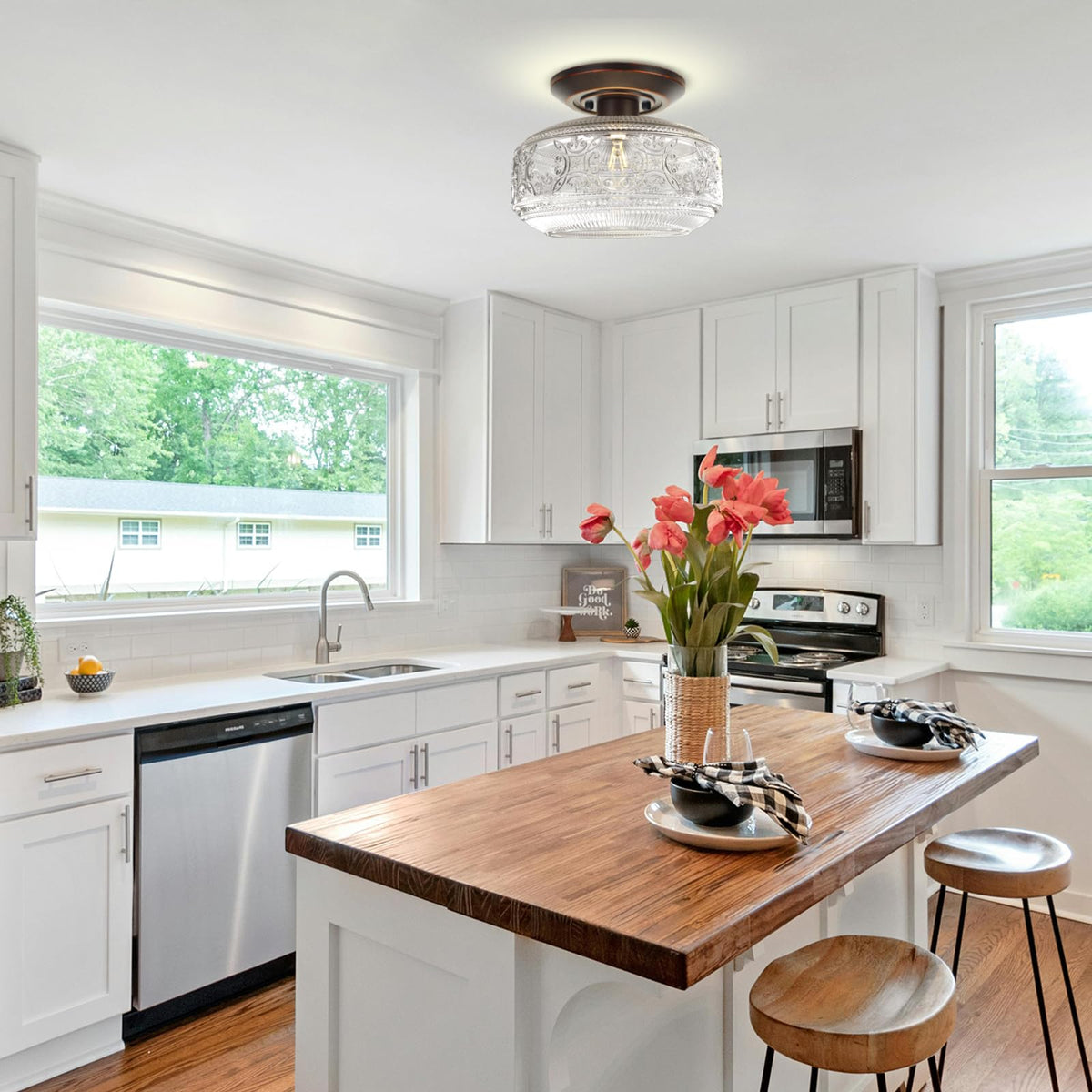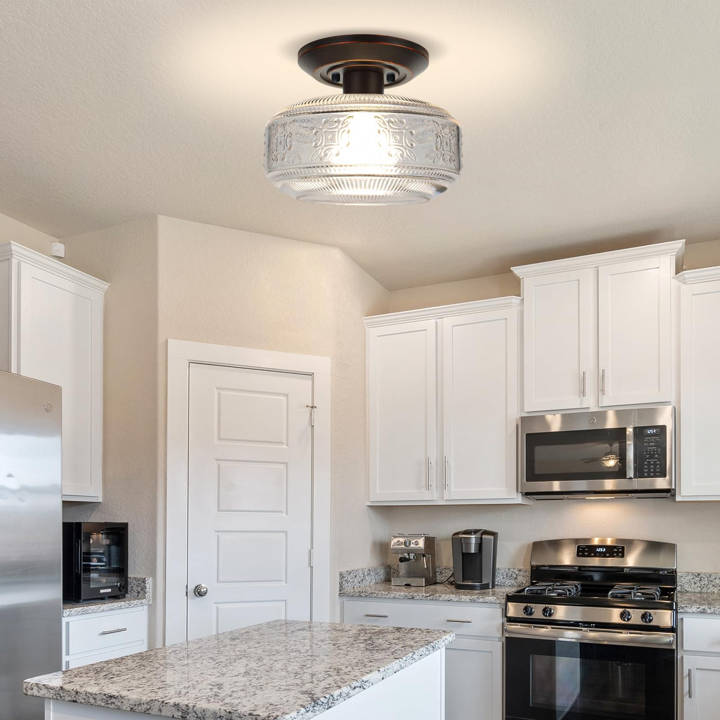 Enhance your space with the KnLnny Ware Oil Rubbed Bronze Flush Mount Ceiling Light, designed to illuminate hallways, porches, corridors, kitchens, and bedrooms with elegance. This versatile ceiling light combines modern and vintage aesthetics, making it an ideal choice for various home decors.