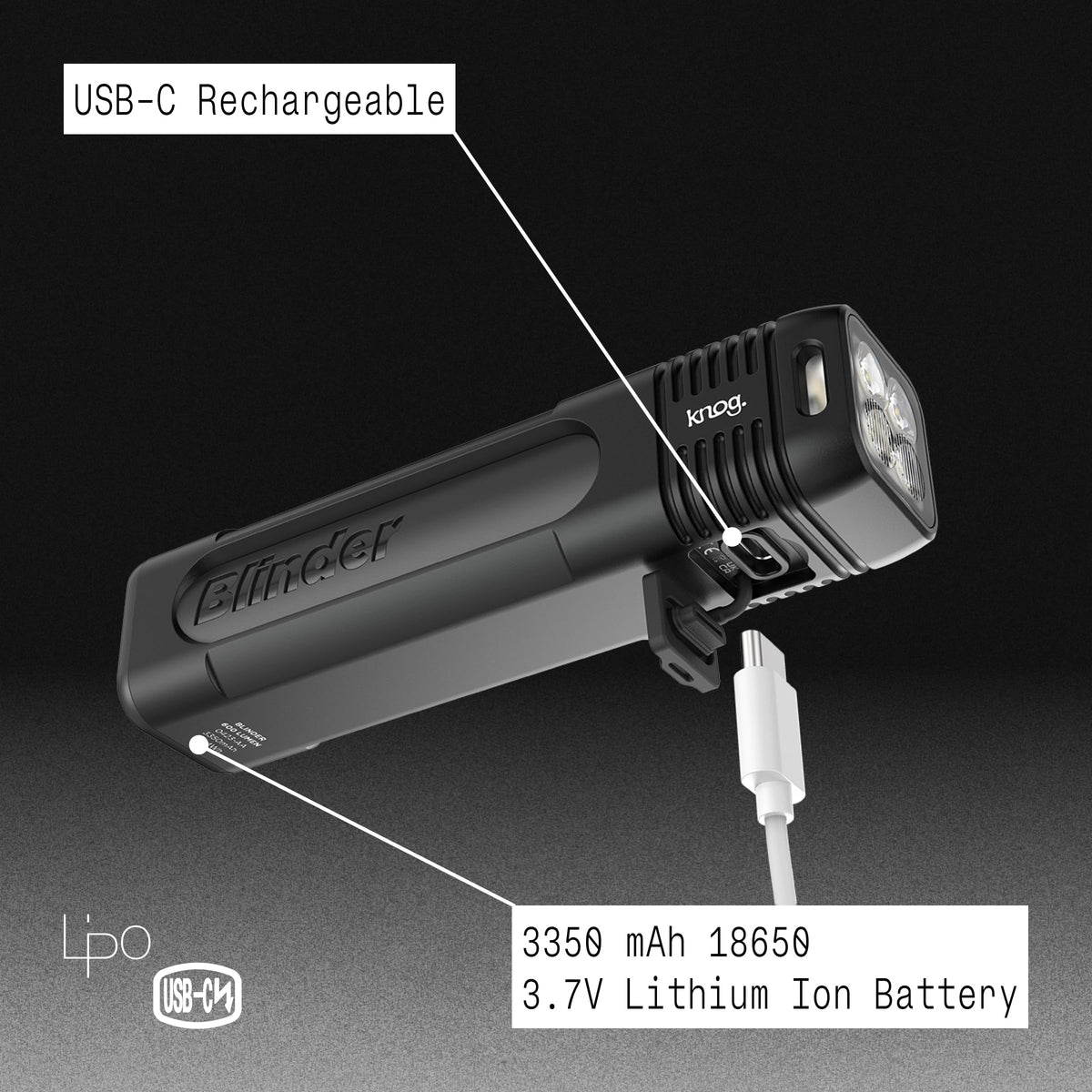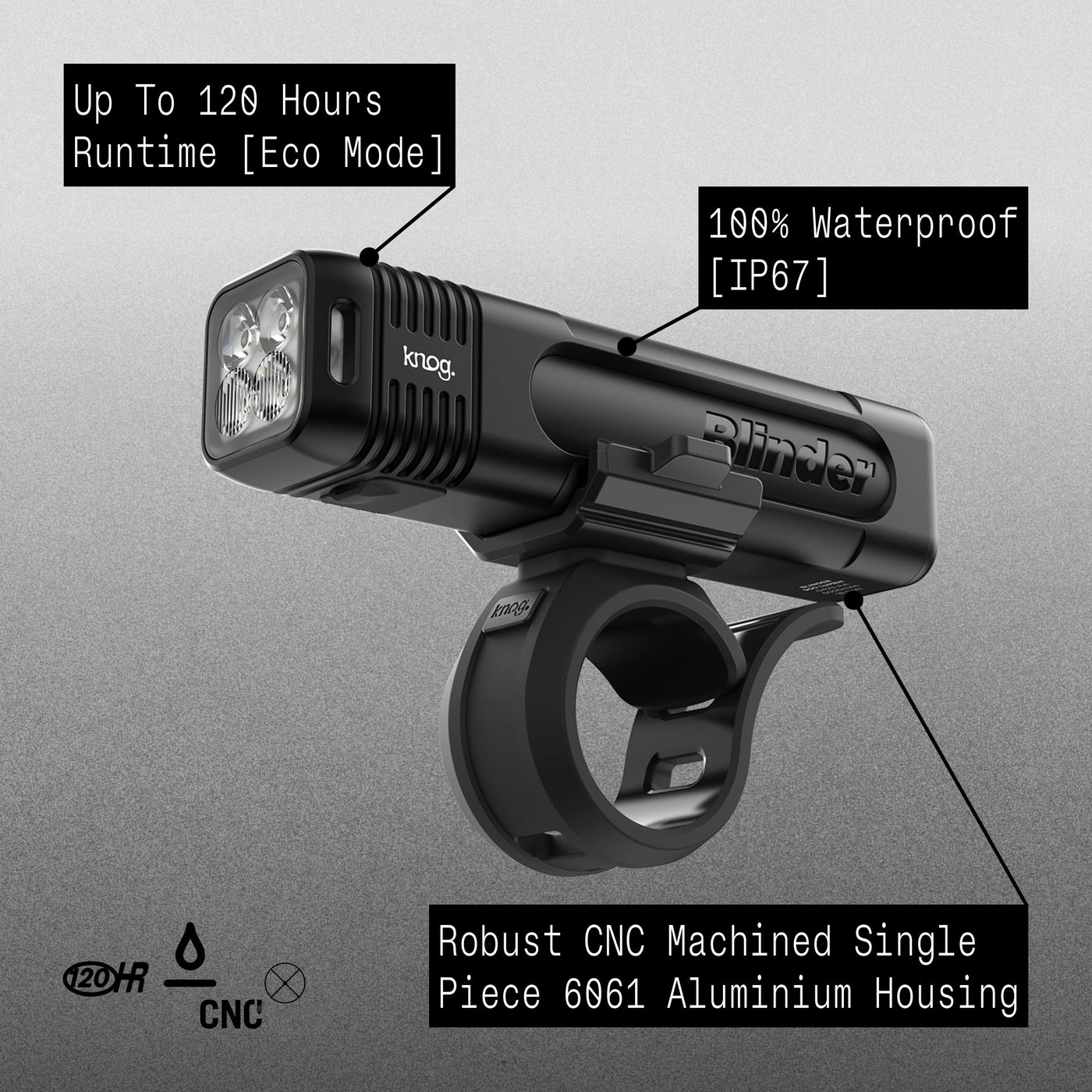 Uncompromised Illumination The Blinder 600 Front Bike Light 600 Lumens delivers an unparalleled illumination experience, ensuring optimal visibility on every ride. Boasting a robust CNC construction and a compact design, this rechargeable headlight for bike seamlessly integrates with your bikes frame. The front light for bicycles emits a powerful 600-lumen beam, strategically angled to provide a wide, evenly distributed field of view, removing dark spots and enhancing your safety on the road. Intuitive Functionality With six pre-programmed light modes, the Blinder 600 Bicycle Front Light 600 Lumens adapts to your specific needs, whether youre commuting through urban areas or exploring off-road trails. The intelligent button LEDs conveniently display battery level and charge status, while the USB-C rechargeable battery ensures hassle-free, sustainable operation. The front bike lights 100% waterproof IP67 rating and side illumination windows provide added visibility, making it an ideal choice for riders seeking a reliable front light for bicycle in any weather condition. Seamless Integration Designed with the modern cyclist in mind, the Blinder 600 Front Bike Light 600 Lumens seamlessly integrates with your riding experience. Its sleek, lightweight construction and secure mounting system ensure a stable, vibration-free fit on your bike head light, allowing you to focus on the ride ahead. Whether youre a seasoned cyclist or a casual rider, this LED bike headlight elevates your visibility, enhances your confidence, and empowers you to explore new routes with unparalleled safety and style. -Robust CNC construction -Compact design -Powerful 600 lumens output -6 light modes, USB-C rechargeable -100% waterproof with side illumination