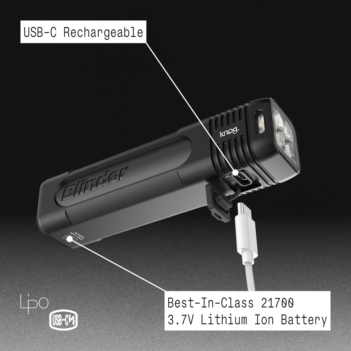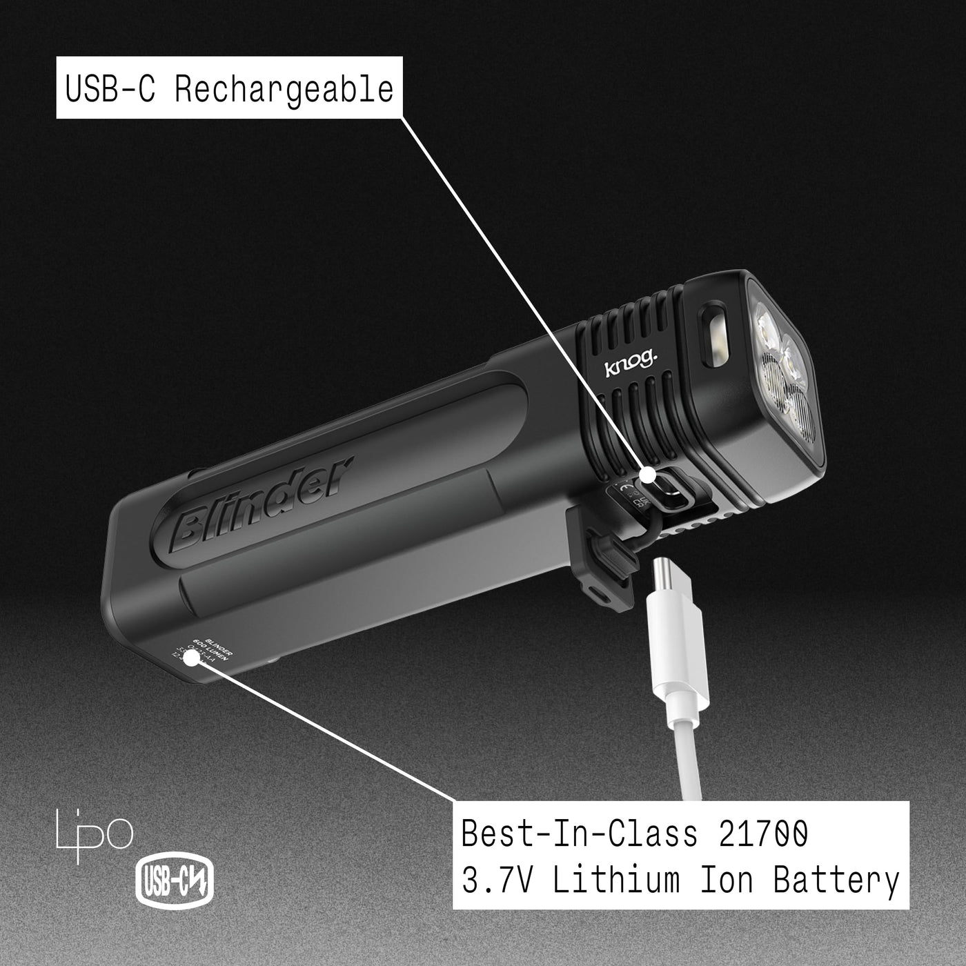 Uncompromised Illumination The Blinder 900 Front Bike Light 900 Lumens delivers an unparalleled illumination experience, ensuring optimal visibility on every ride. Boasting a robust CNC construction and a compact design, this rechargeable headlight for bike seamlessly integrates with your bikes frame. The front light for bicycles emits a powerful 900-lumen beam, strategically angled to provide a wide, evenly distributed field of view, removing dark spots and enhancing your safety on the road. Intuitive Functionality With six pre-programmed light modes, the Blinder 900 Bicycle Front Light 900 Lumens adapts to your specific needs, whether youre commuting through urban areas or exploring off-road trails. The intelligent button LEDs conveniently display battery level and charge status, while the USB-C rechargeable battery ensures hassle-free, sustainable operation. The front bike lights 100% waterproof IP67 rating and side illumination windows provide added visibility, making it an ideal choice for riders seeking a reliable front light for bicycle in any weather condition. Seamless Integration Designed with the modern cyclist in mind, the Blinder 900 Front Bike Light 900 Lumens seamlessly integrates with your riding experience. Its sleek, lightweight construction and secure mounting system ensure a stable, vibration-free fit on your bike head light, allowing you to focus on the ride ahead. Whether youre a seasoned cyclist or a casual rider, this LED bike headlight elevates your visibility, enhances your confidence, and empowers you to explore new routes with unparalleled safety and style. -Robust CNC construction -Compact design -Powerful 900 lumens output -6 light modes, USB-C rechargeable -100% waterproof with side illumination