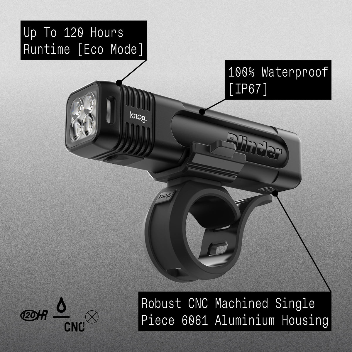 Knog Blinder 900 Bike Light - 900 Lumen Bicycle Light with Compact CNC Design, 6 Modes, USB-C Rechargeable, IP67 Waterproof, LED