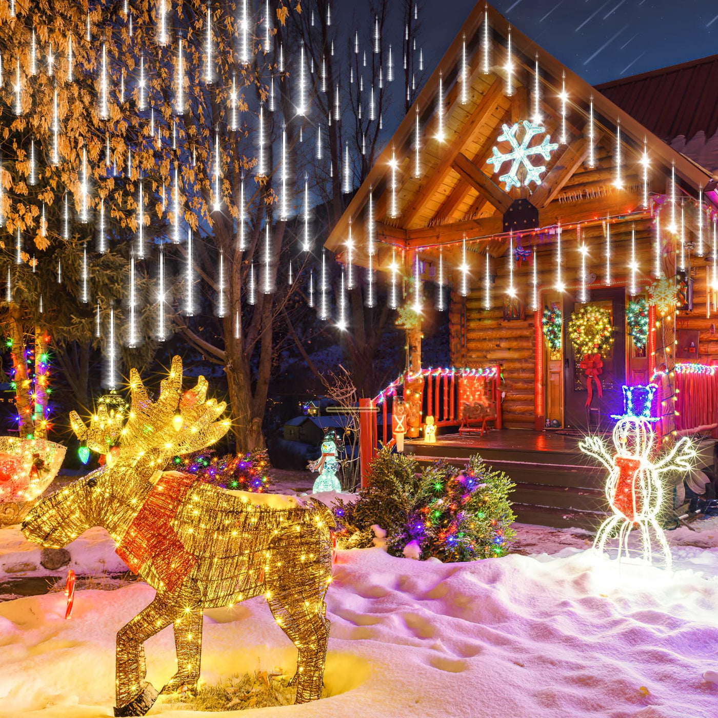 KNONEW 15in Outdoor Christmas Lights, 24 Tubes, 672 LED Cool White Meteor Shower Lights, Waterproof for Holiday Decorations