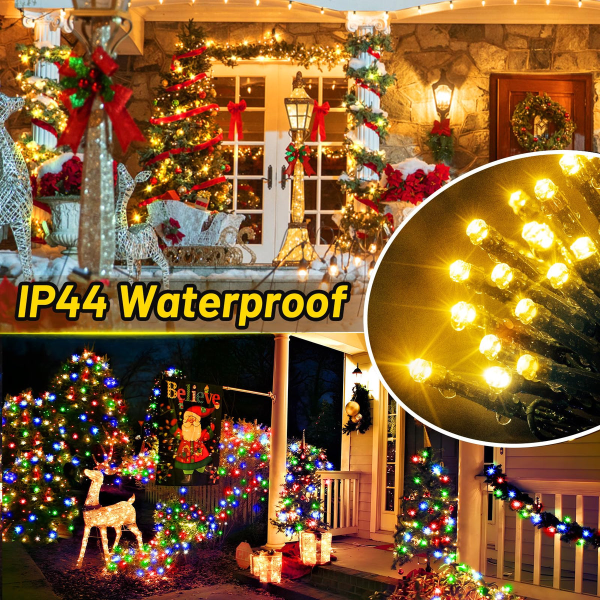 Q: Are these Christmas lights safe for outdoor use?A: Yes, the KNONEW Christmas lights are designed with an IP44 waterproof rating, making them suitable for outdoor use. They are made with high-quality materials that resist weather changes, allowing for year-round display.