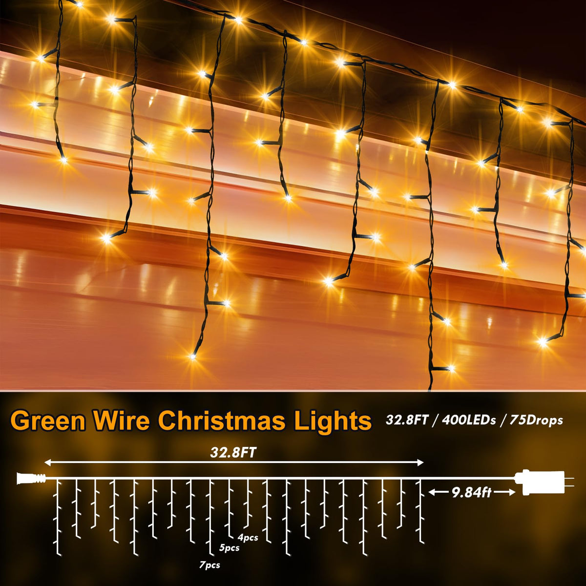 Q: Is the wire color of the KNONEW Christmas lights suitable for blending with outdoor decor?A: The KNONEW Christmas lights are made with black wire, which is designed to blend seamlessly with dark backgrounds like trees, fences, or eaves, enhancing the overall aesthetic of your decor.