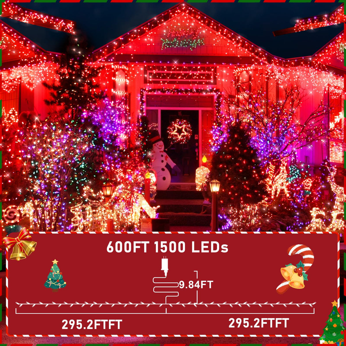 Knonew 600Ft 1500 Led String Lights Outdoor Christmas Lights 8 Modes & Timer Fairy Light Plug In Waterproof Led String Lights For Xmas Yard Tree Wedding Party Holiday Decorations (Red)