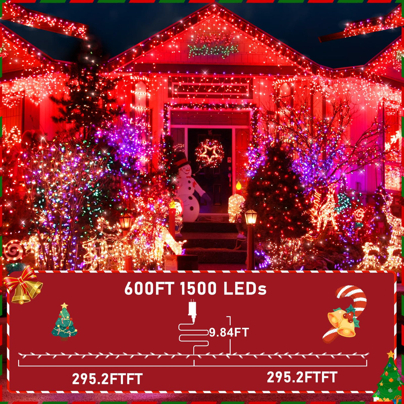 Q: How long is the plug cord for the KNONEW String Lights?A: The KNONEW 600ft LED String Lights come with a 9.84ft plug cord, providing ample length to easily reach power outlets while allowing you to decorate larger areas.