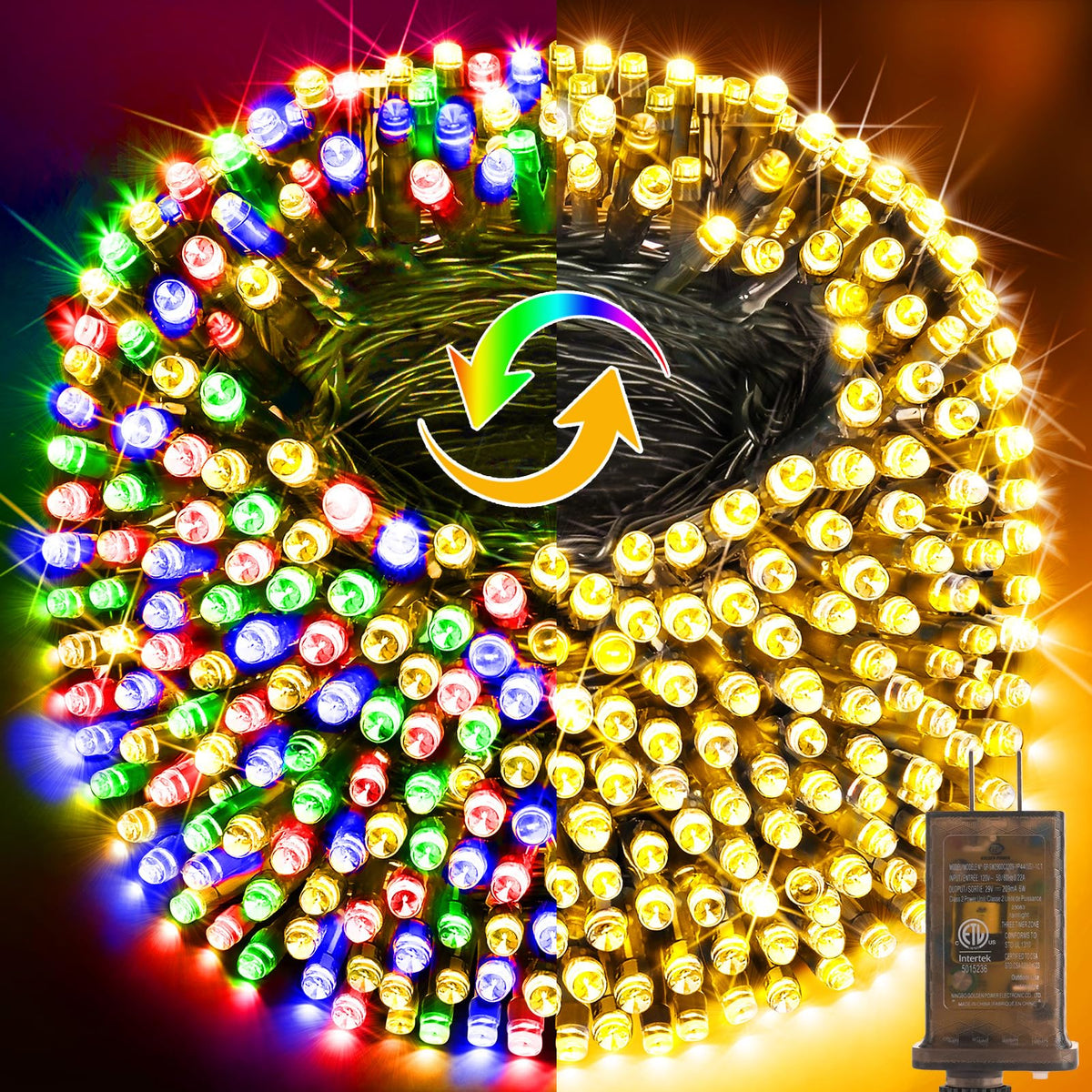 Knonew Led Christmas Lights 403Ft 1000 Bulbs Color Changing Waterproof Fairy Lights For Outdoor, Warm White To Multicolor, Model Bg-Cl3M3-306L01