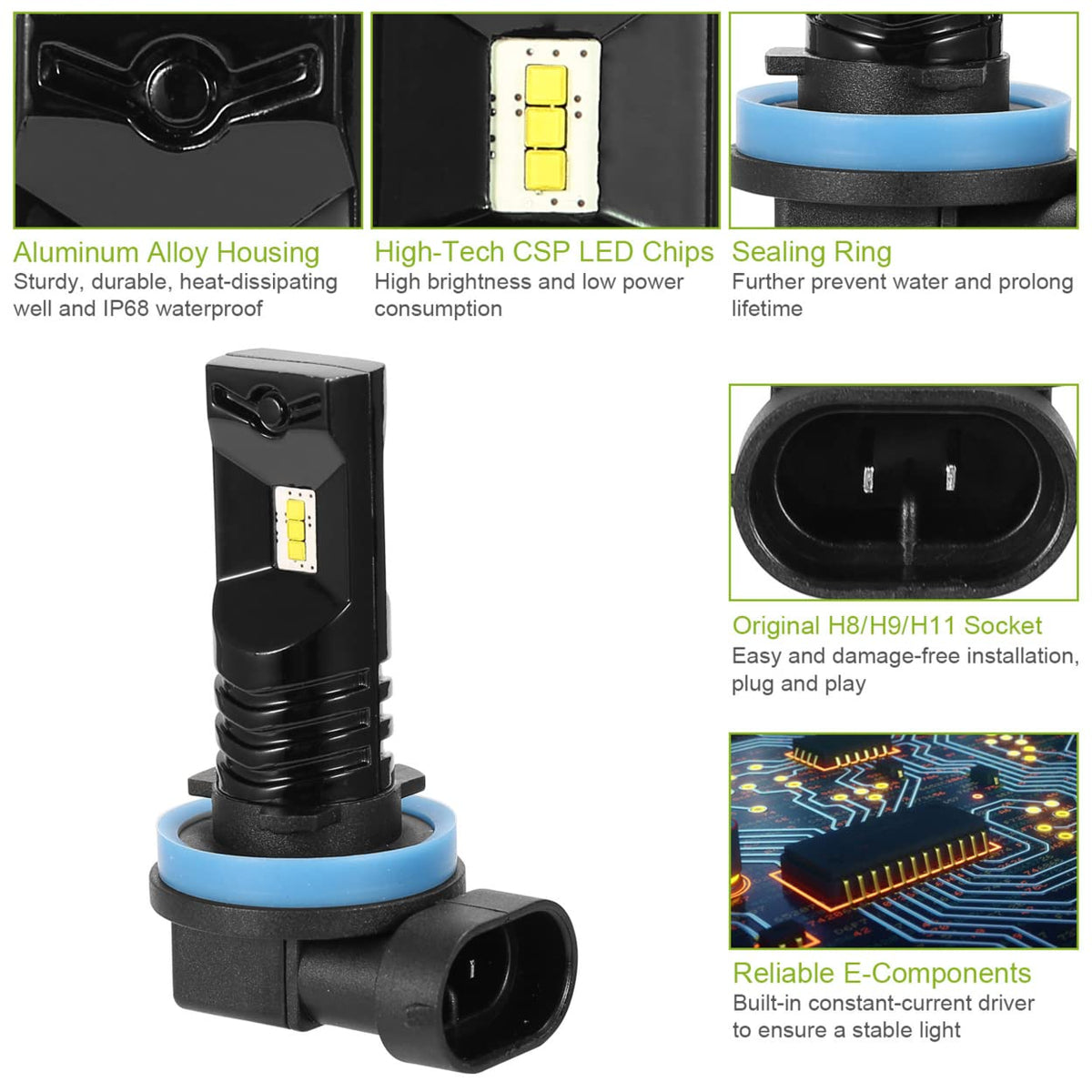 Kocaso 2Pcs 80W H8/H9/H11 Led Fog Light Bulb 600Lm Ip68 Waterproof