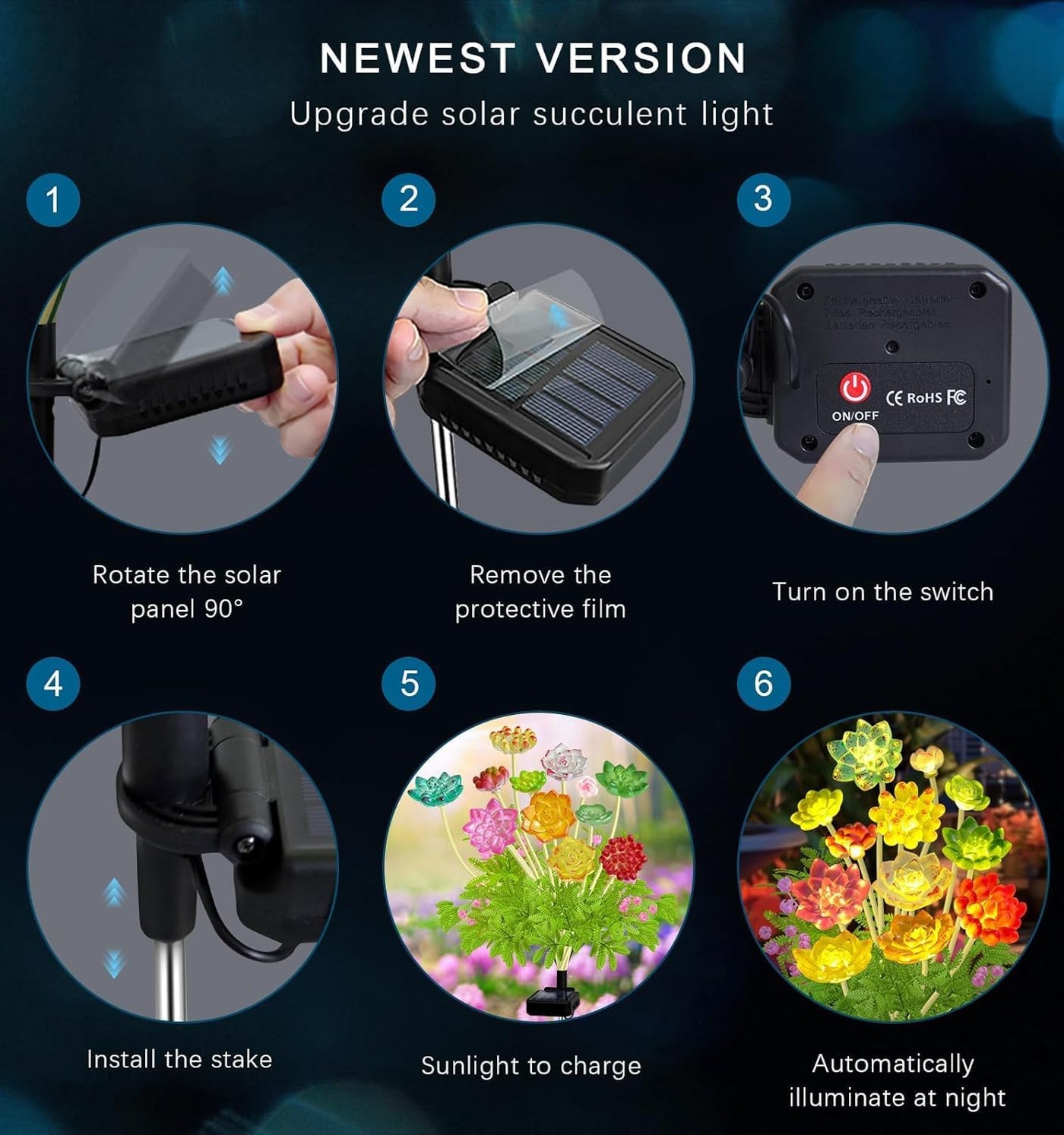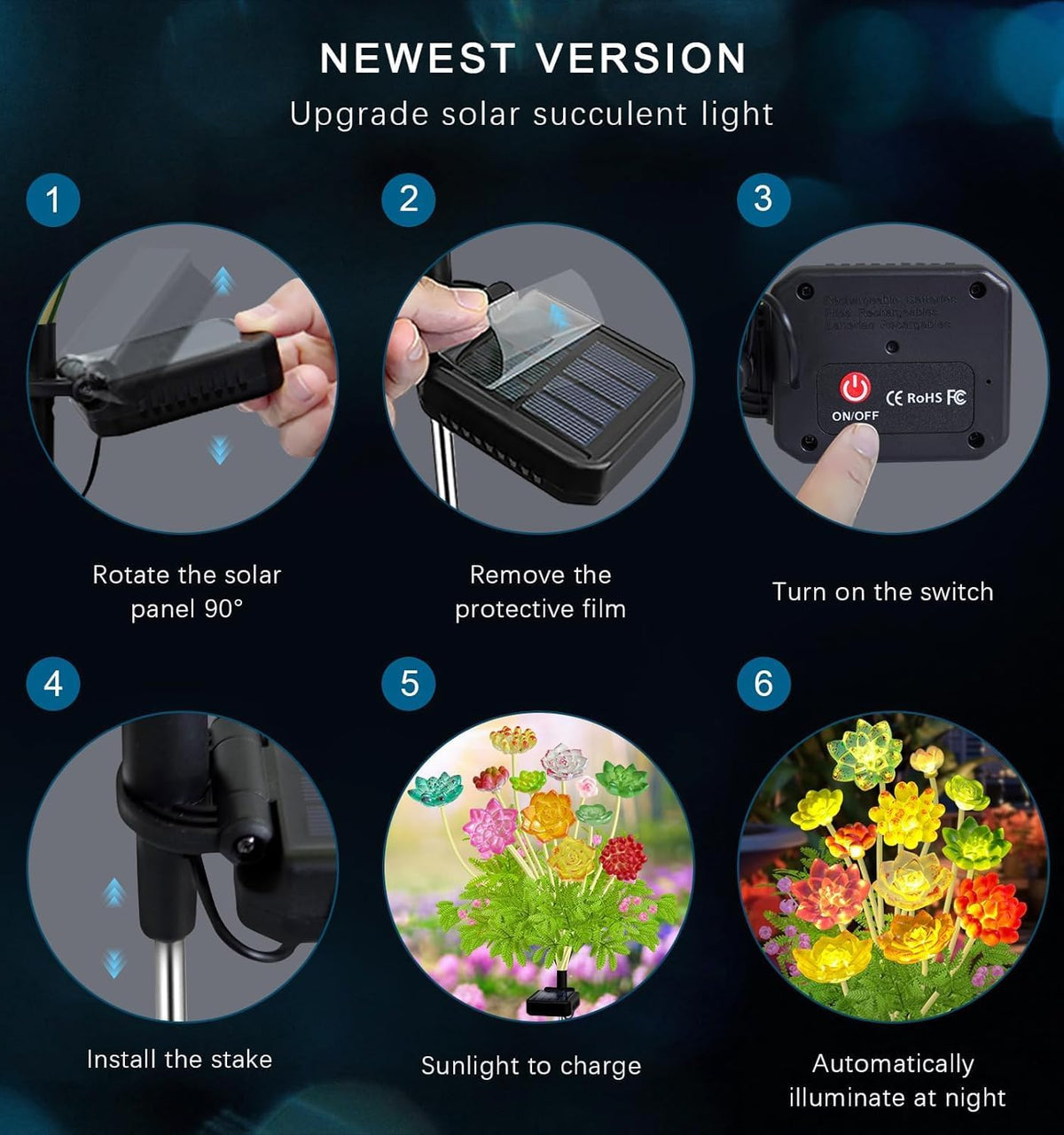 Solar Garden Lights Outdoor Upgraded 6 Pack Succulent Solar Lights Waterproof For Outdoor Yard Decor