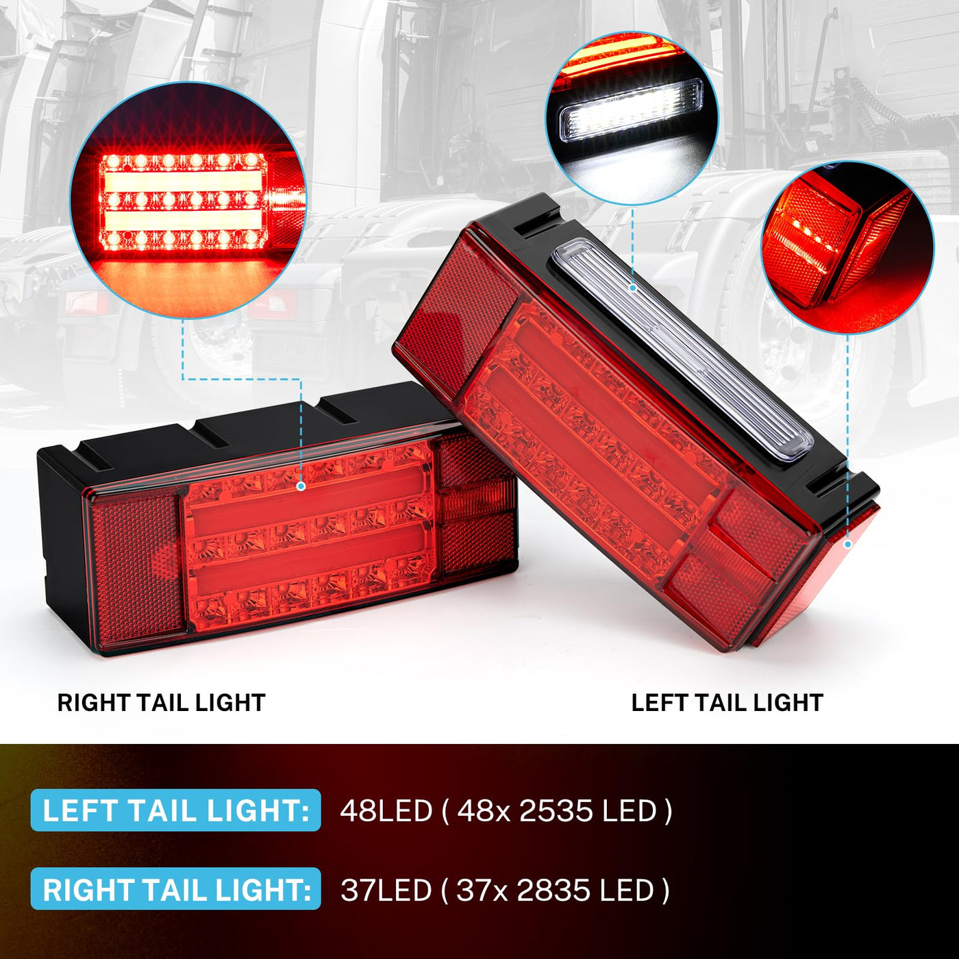 Kohree Submersible Led Trailer Lights Kit, 12V Super Bright Utility Brake Stop Turn License Tail Lights, Rectangular Trailer Lig