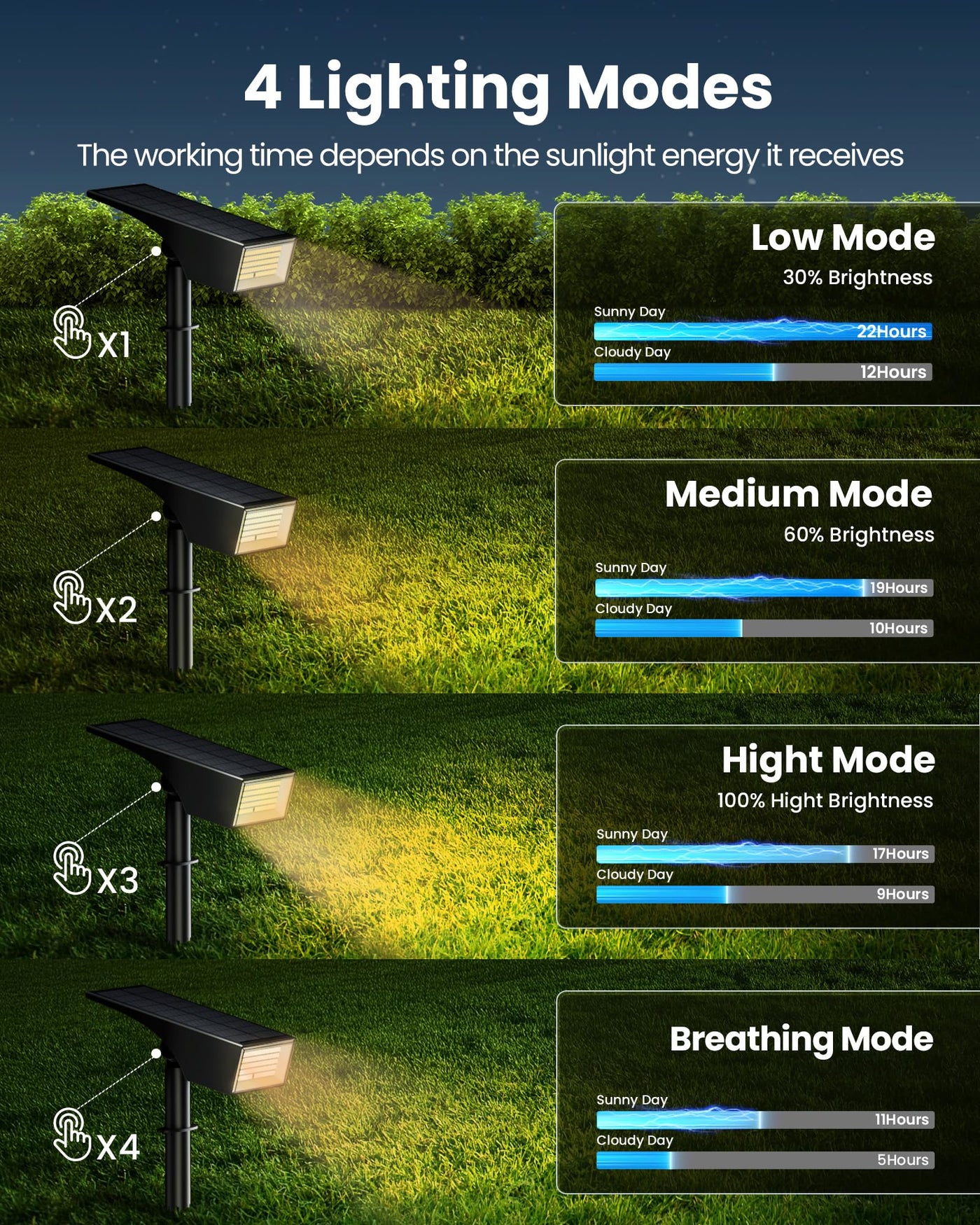 Solar Spot Lights Outdoor, Solar Landscape Spotlights, 3 Lighting Modes Solar Powered Lights Outdoor Waterproof Ip65, Wall Lights For Pathway Yard Garden