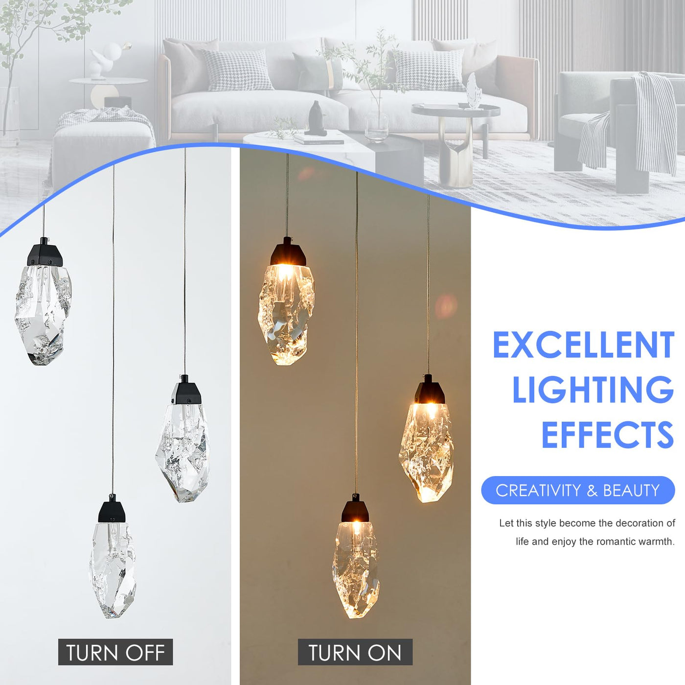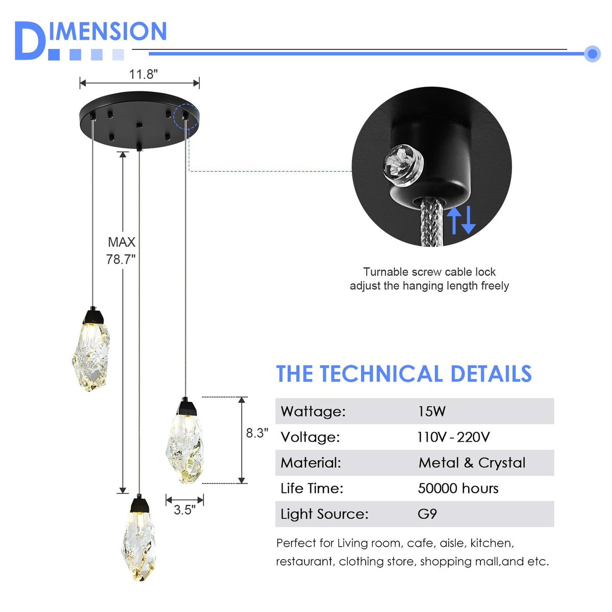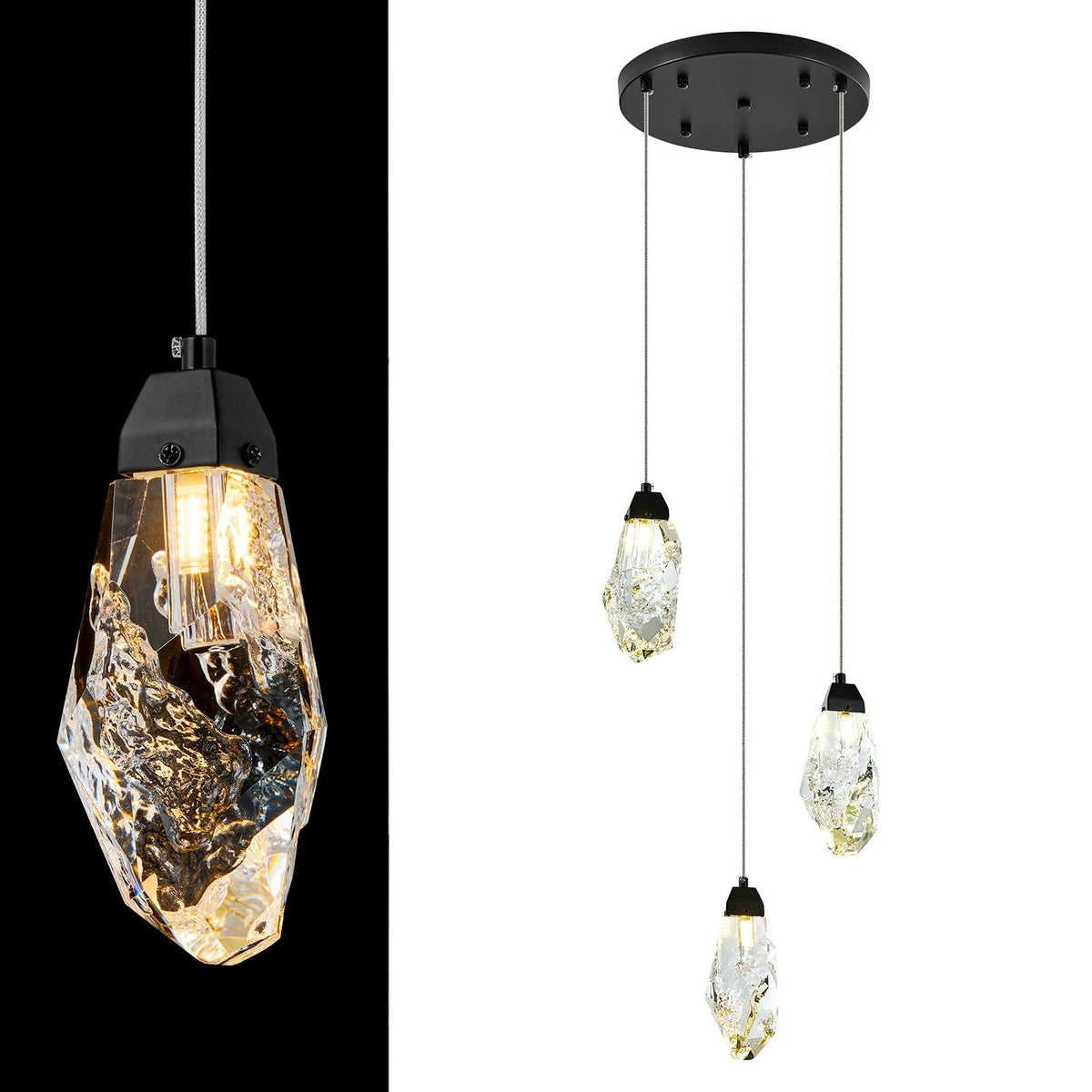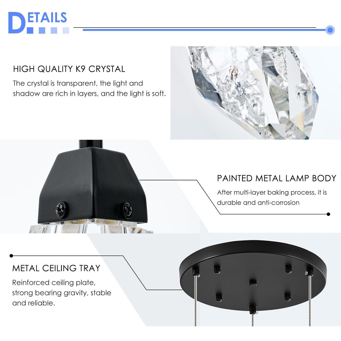 Kokaizeeki 3 Lights Crystal Pendant Light Modern Cluster Chandelier Dimmable Pendant Light Fixture With Black Teardrop Design St