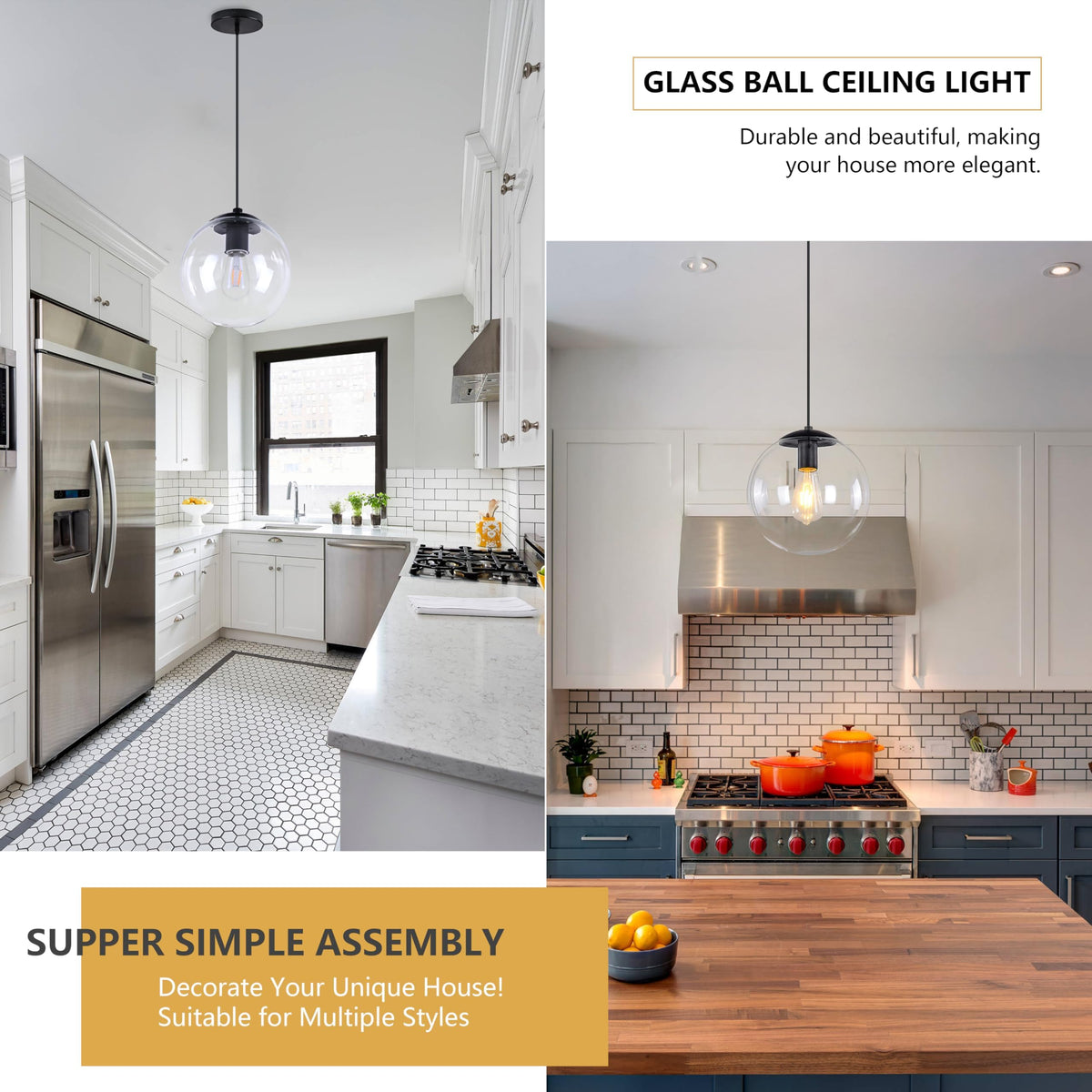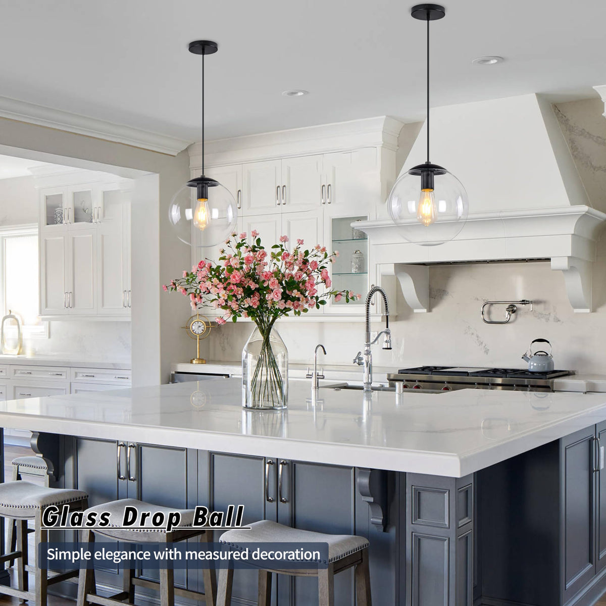 - **Stylish Design**: The pendant light boasts a contemporary design with a 9.8-inch diameter clear glass globe and a minimalist black ceiling plate, seamlessly blending with various interior styles.
